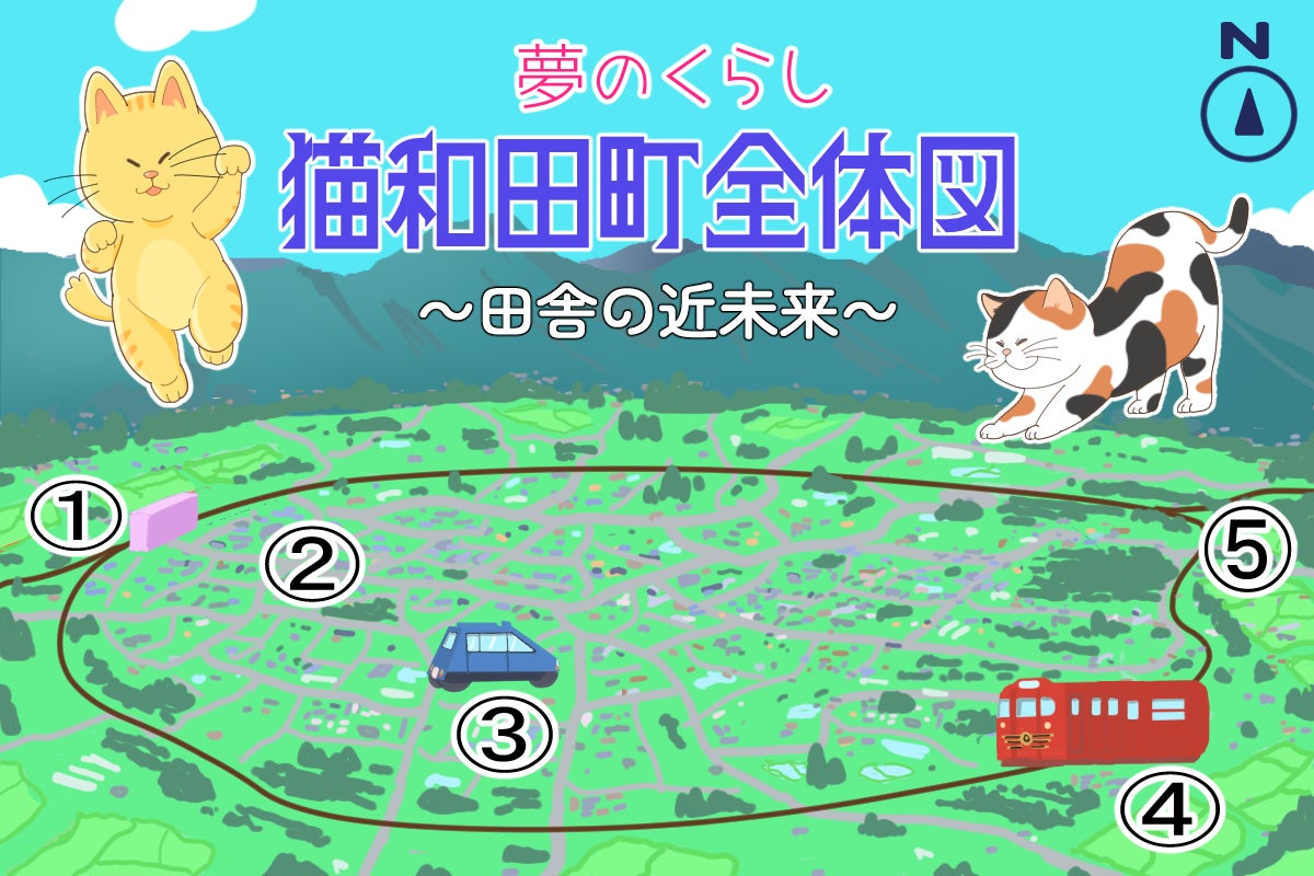 ▲人口減少で衰退の一途を辿ろうとしていた猫和田町。しかし!地元大企業の資本と、天才博士の技術が雇用もインフラも確保した!