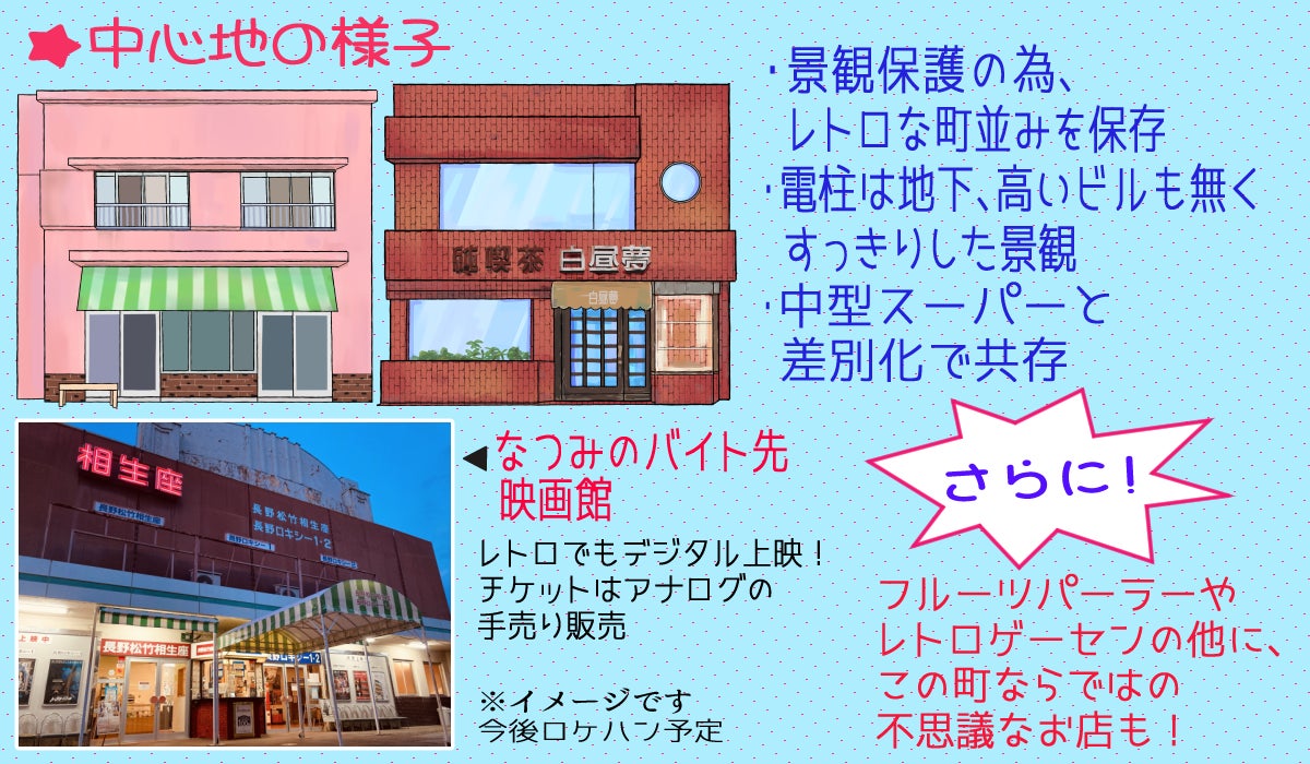 ■町唯一の映画館 なつみのアルバイト先ですが、私自身がレトロな映画館での勤務経験があり、今まであまり描かれ無かった、詳細な映画館の勤務描写が出来ると思います!