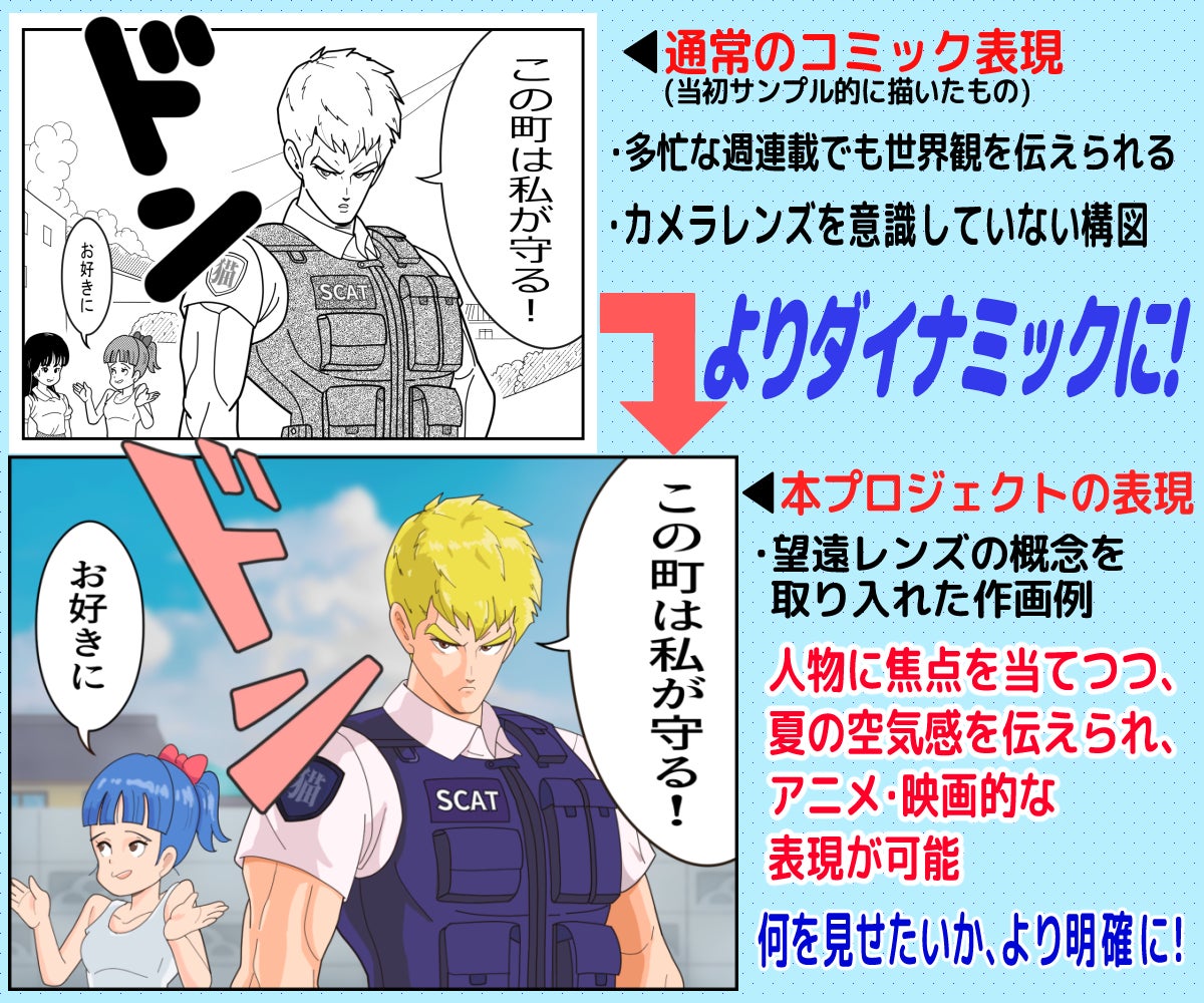 アニメ風に描くことで他作品と一線を画すと共に、読者の方に「これがアニメになったらなぁ!」と連想してもらえる様な話題性でメジャー化される事が最終ゴールです!