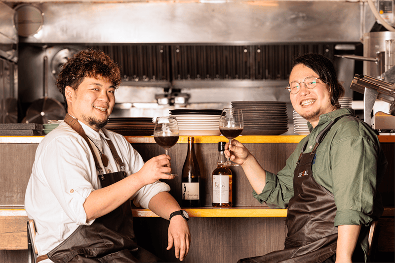 こちらは、撮影日に小物で開けたワインを飲む僕たち。