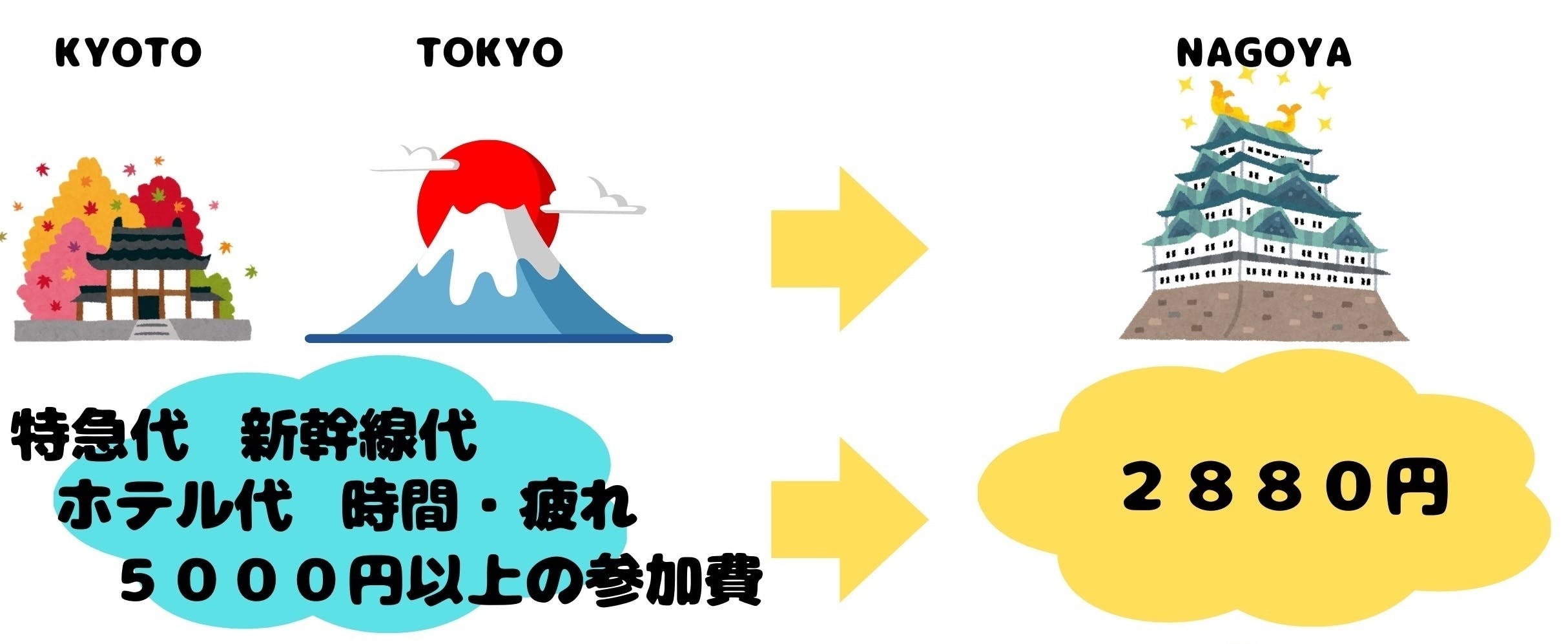 たとえば、東京で2万円(参加費5,800円以上+交通費+宿泊費)かかるのが、今イベントですと5千円(参加費2,880円と+交通費)、4分の1の参加費でイベントに参加できる計算になります。