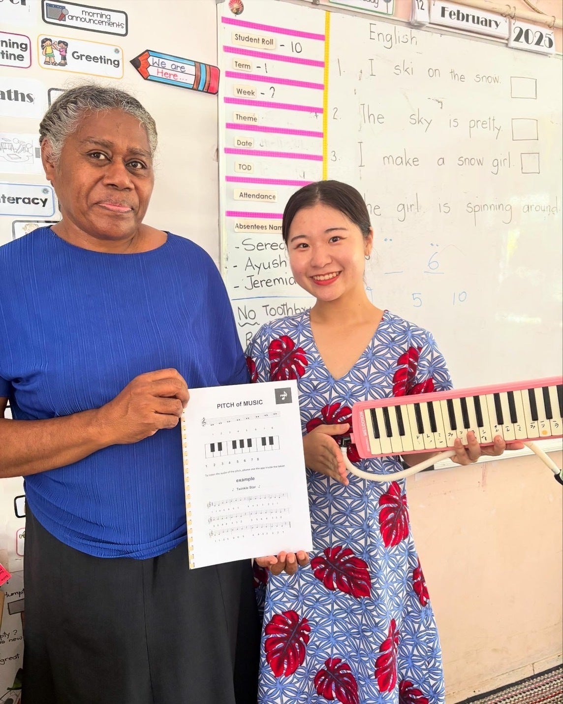 フィジーの子供たちは、音楽を心から愛していて、充実した音楽教育を得られる環境を心待ちにしています。私は、そんなフィジーの子供たちと音楽の懸け橋に、そして日本と幸せの懸け橋になりたいです。