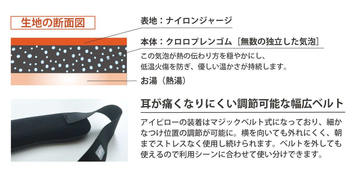①アイピローひとつで温冷双方の利用が可能に