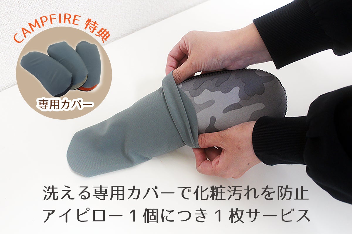CAMPFIRE特典として、【非売品】洗える専用カバーがアイピロー1個につき1枚つきます。