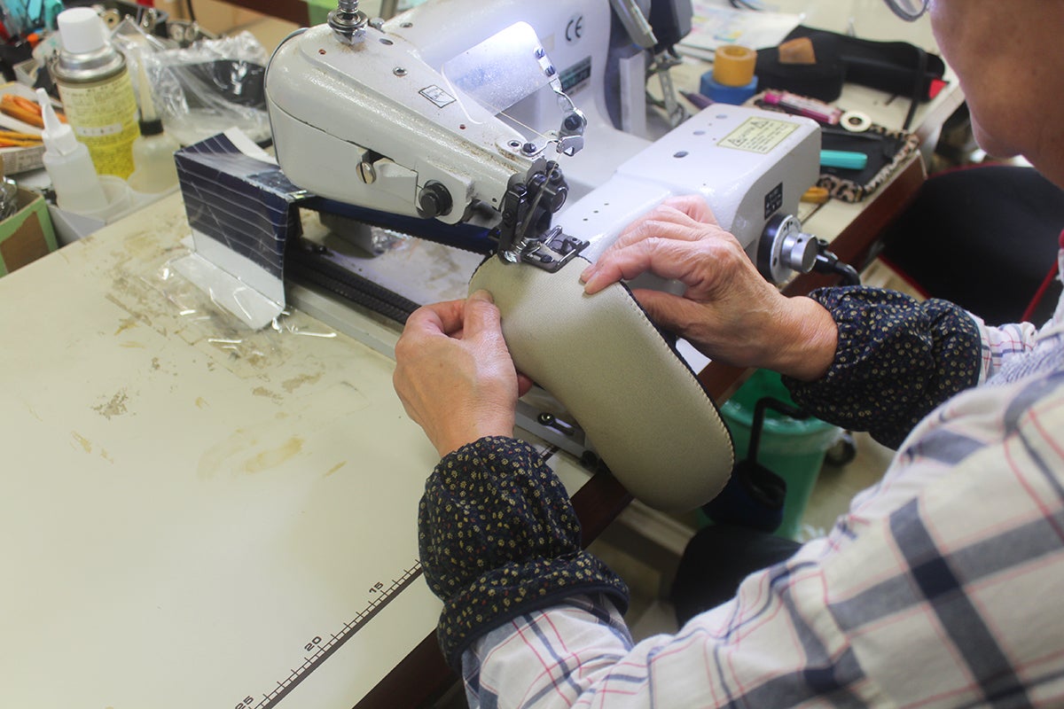 すべての製品に、ウェットスーツの素材として使用される、クロロプレンゴムにナイロンジャージを貼った肌触りの良い特殊な生地を使用しており、自社工場で職人たちが一品一品丁寧に手作りした、こだわりのオンリーワン商品を産み出しています。