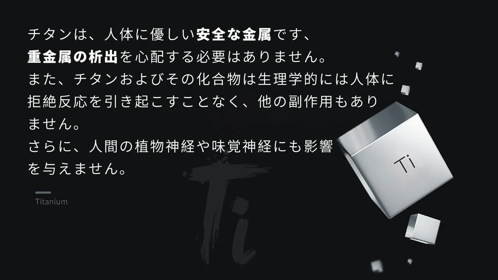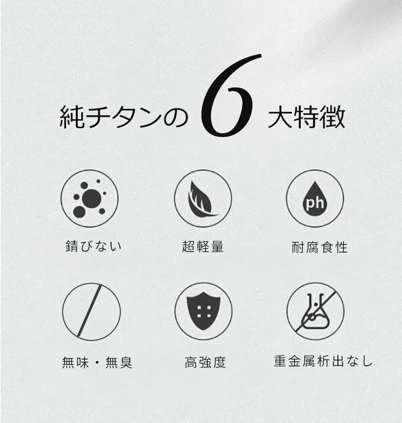 人体にやさしい金属として知られるチタンは、強度が高く、その強さは飛行機や宇宙船などにも採用されているほど。そのような強靭な素材を使用した製品は、耐久性と信頼性があり、日常の使用においても優れたパフォーマンスを発揮します。