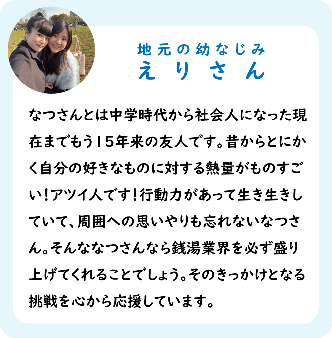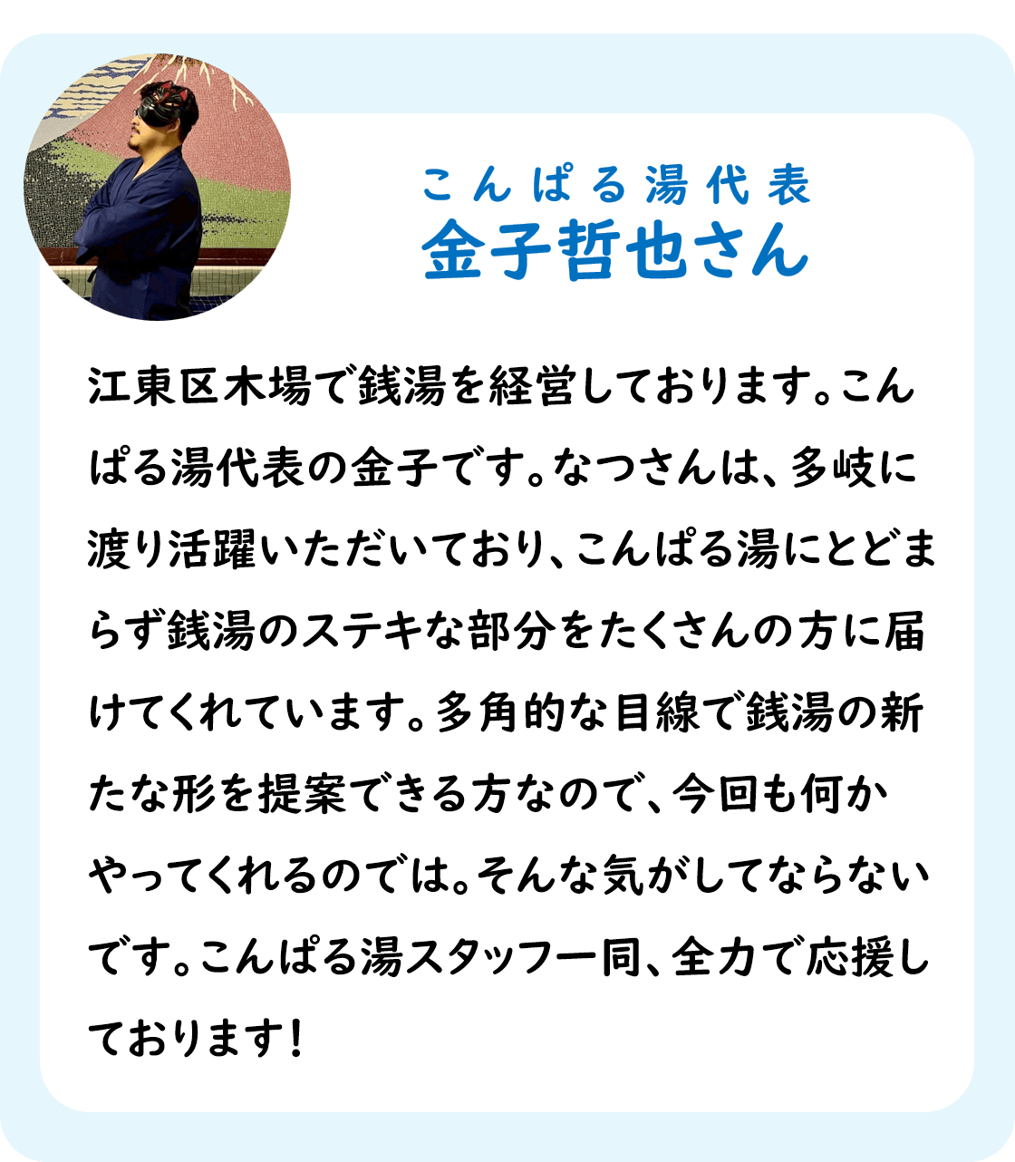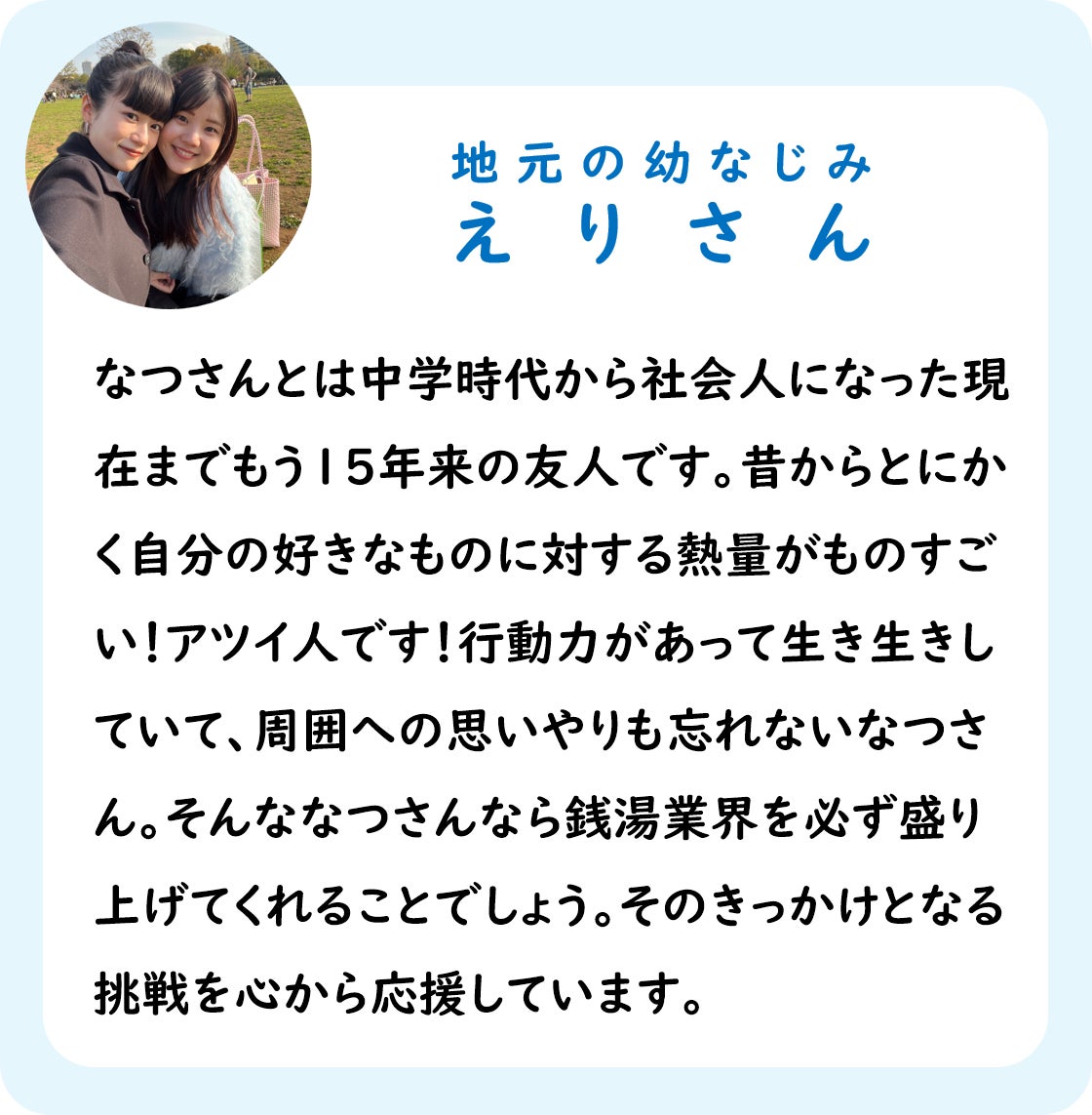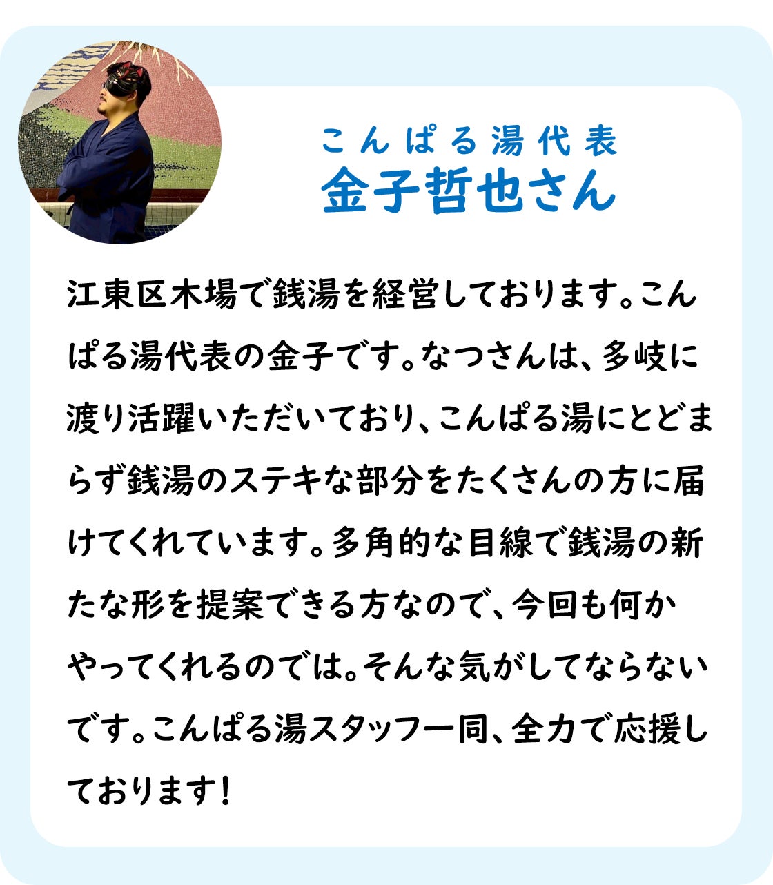 はじめまして!このたび「銭湯を応援するアパレルブランド」のプロデューサーを務めるなつです。