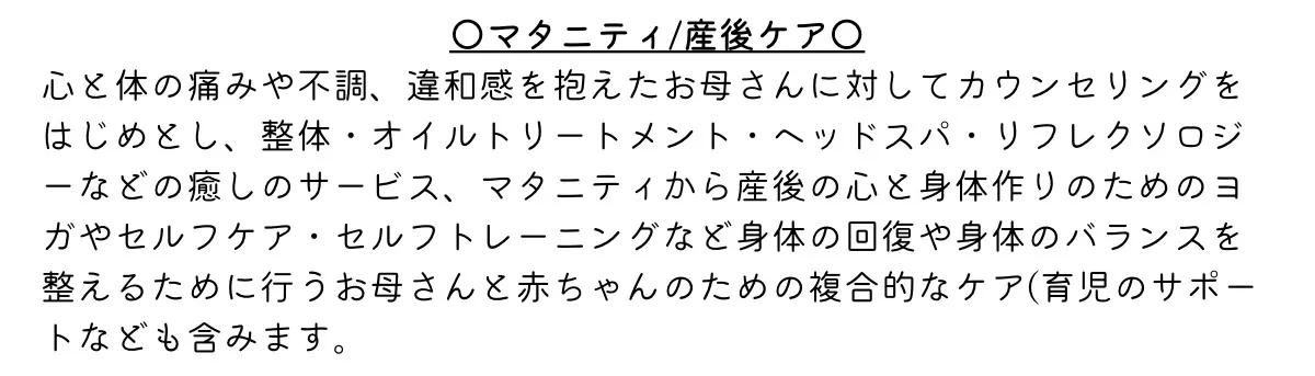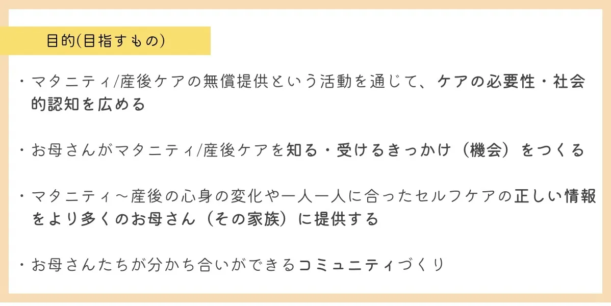 このページから、マタニティ・産後ケアの認知が広がり、誰かのきっかけとなることを心から願っています。
