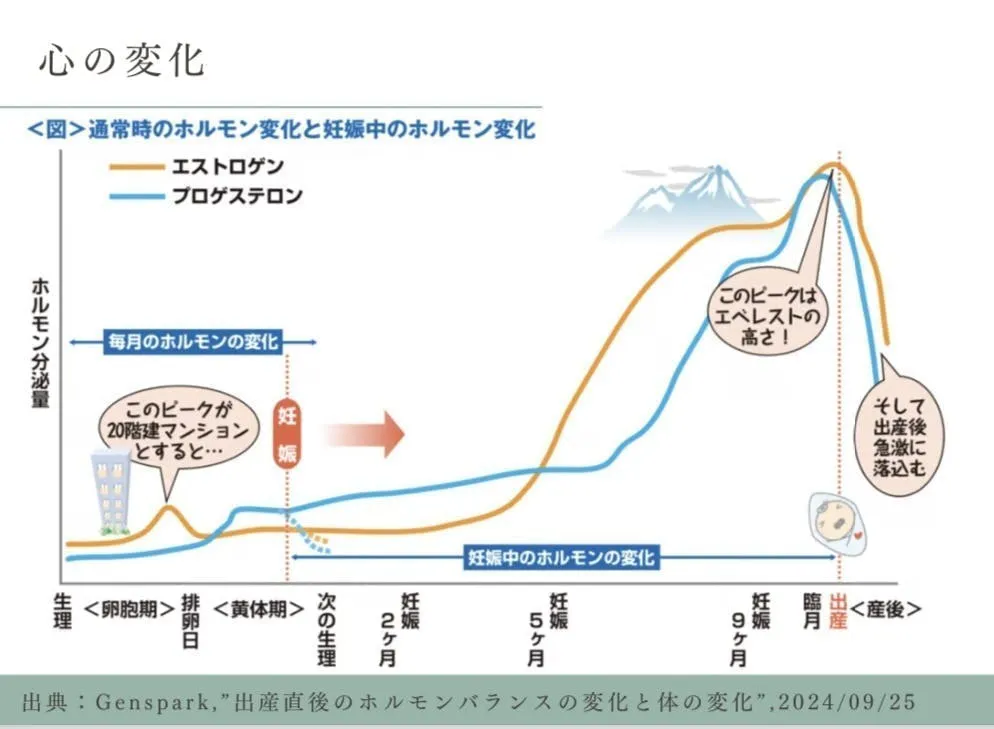 これらの声は、決して大げさなんかではありません。例えば、妊娠~産後の心の変化だけでもこれだけの差があるのです。