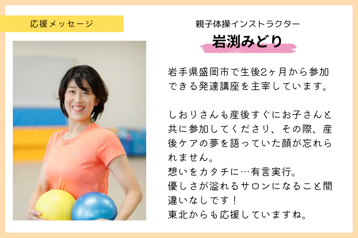 産前産後のママをケアする事の重要性をたくさんの方に知ってもらい、この場所から多くの方が幸せになっていけるように応援しています。