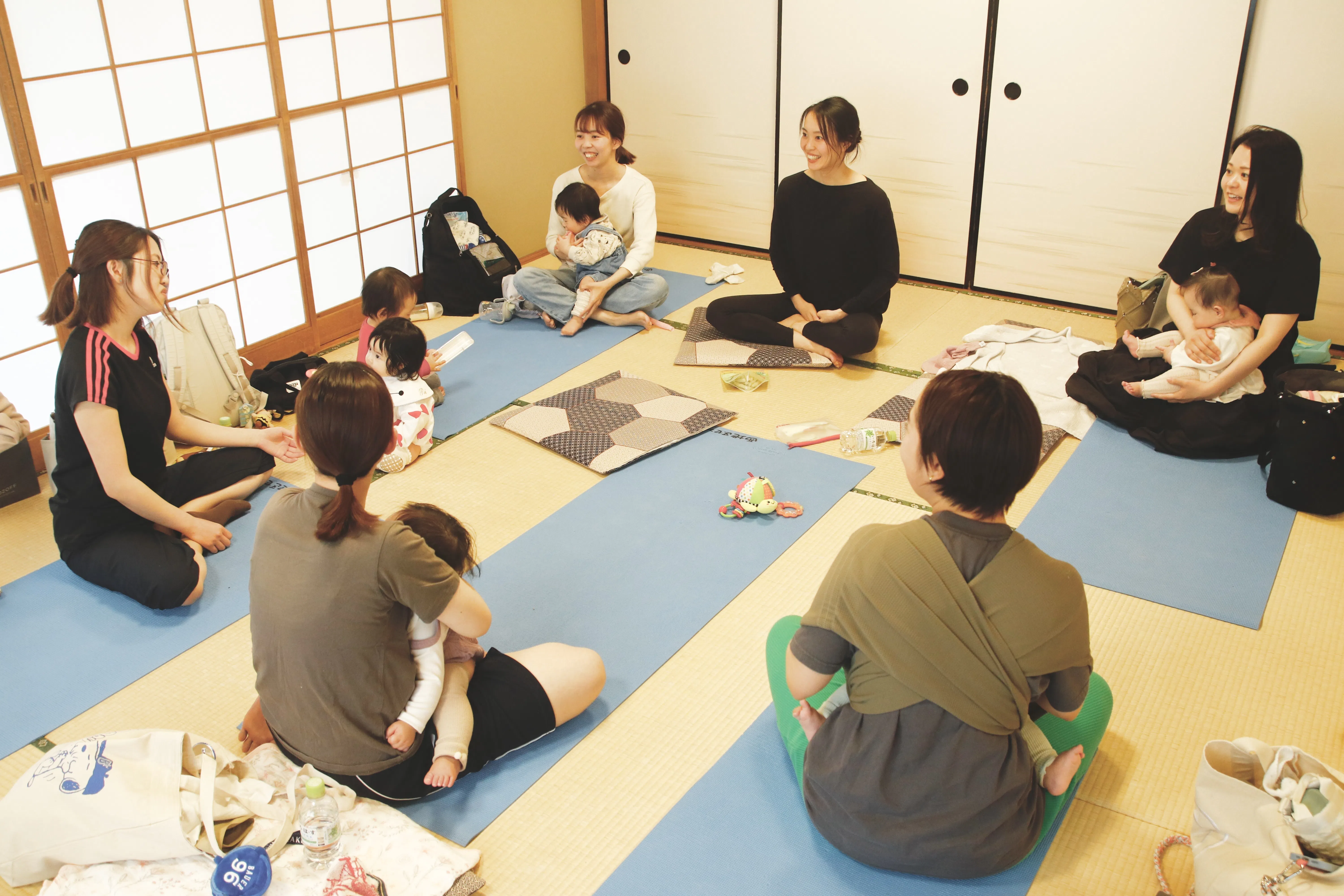 ①左上:横浜駅近隣で月に一度開催する子連れOKの産後ヨガのクラス