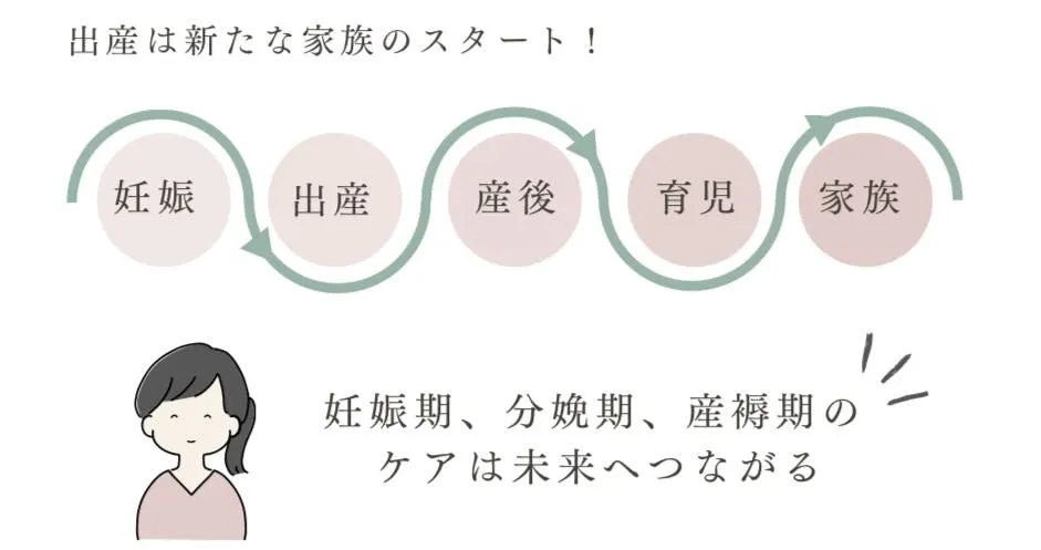 これらのために妊娠期から心と身体の複合的なケアを行い、産後~育児へと繋げるサポートするべきです。