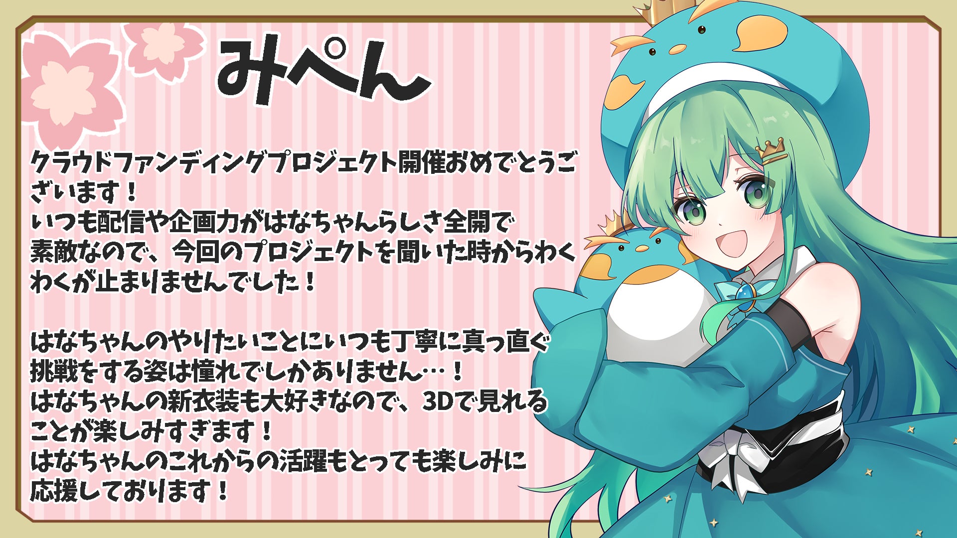 「はなごろもちゃんの夢のためなら応援したい!と思ってくれるリスナーさんもいるはずだよ!」