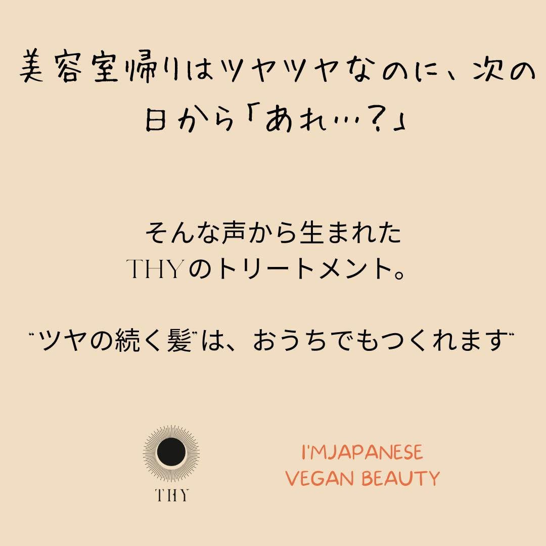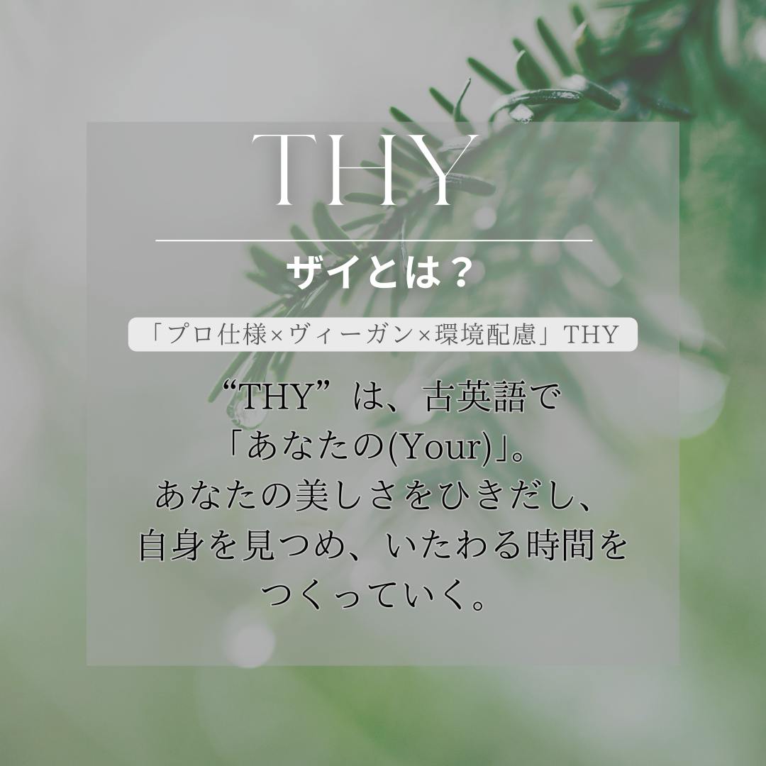 THYは、「髪にも、心にも、環境にもやさしくあること」を大切にして、・動物由来成分を一切使わないヴィーガン処方・敏感肌にもやさしい日本製・プロの美容師としてのこだわりを詰め込みました。