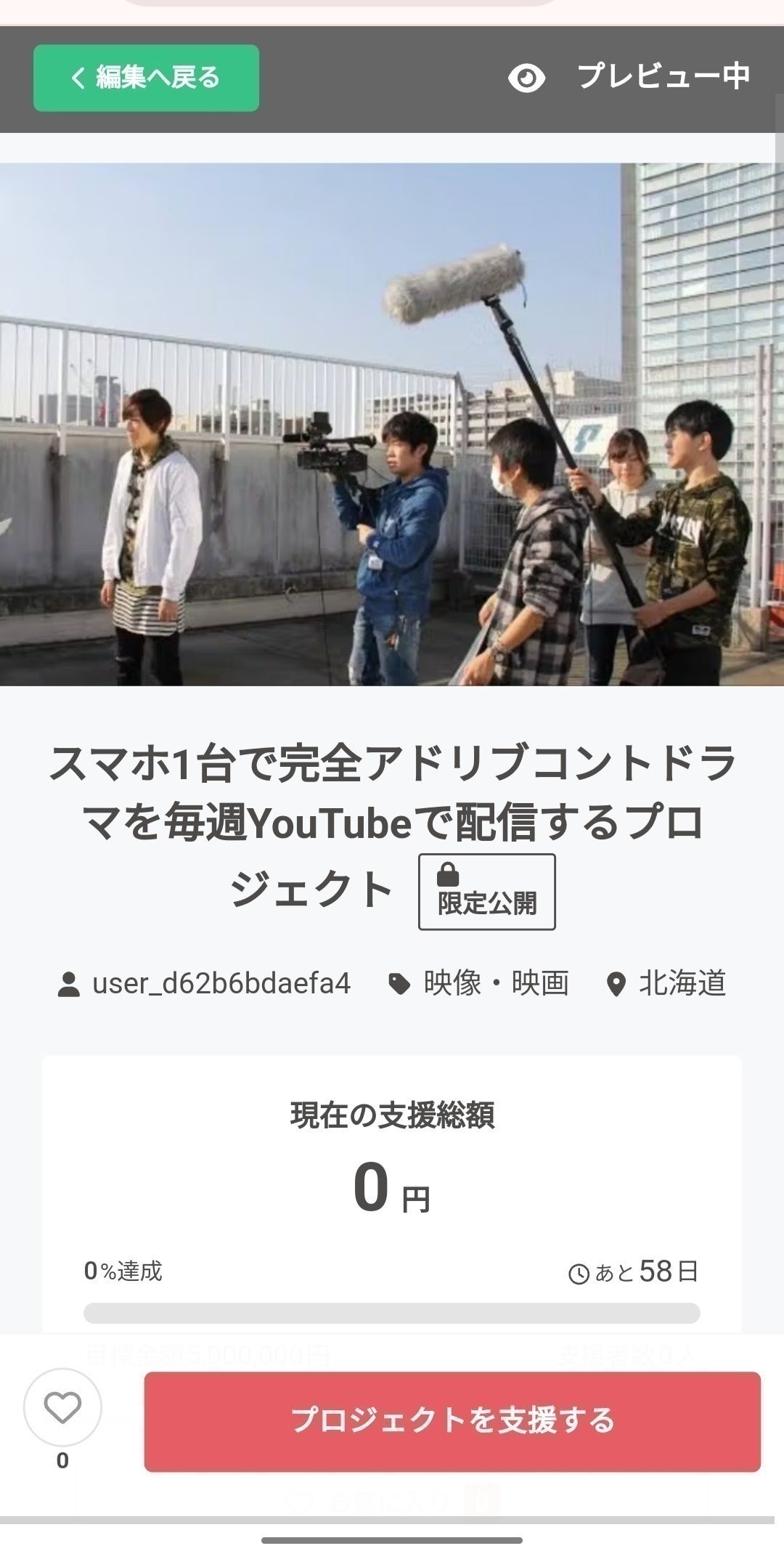 このプロジェクトは私がかねがね、思っていた新しいエンタメだと思っています。スマホ1台で低コストで完全アドリブコントドラマを函館市と新潟というロケーションでドラマを制作したいと思っています。