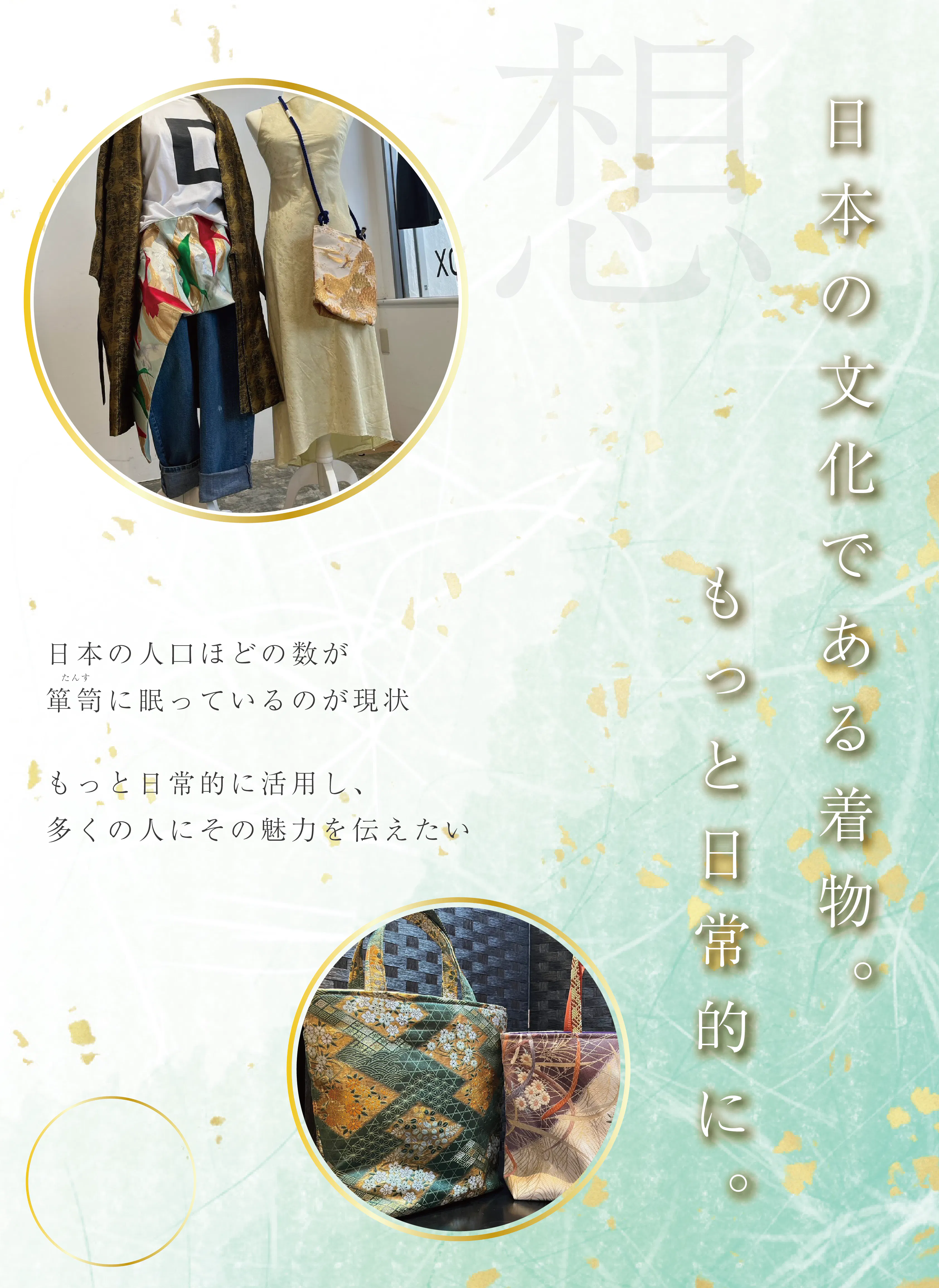 私たちは「着物リメイクファッション」を通じて、現代の暮らしに合った形で日本文化を楽しんでいただきたいと考えています。