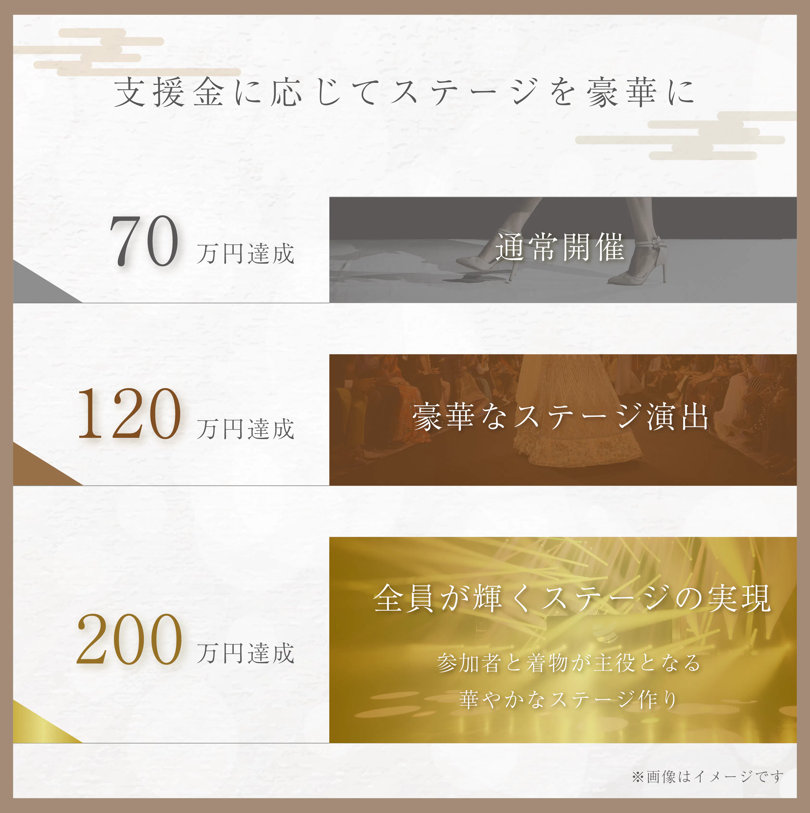 この資金を集めることで、2025年5月10日(土)ー5月11日(日)に開催されるイベントのファッションショーステージをより豪華で魅力的なものとし、