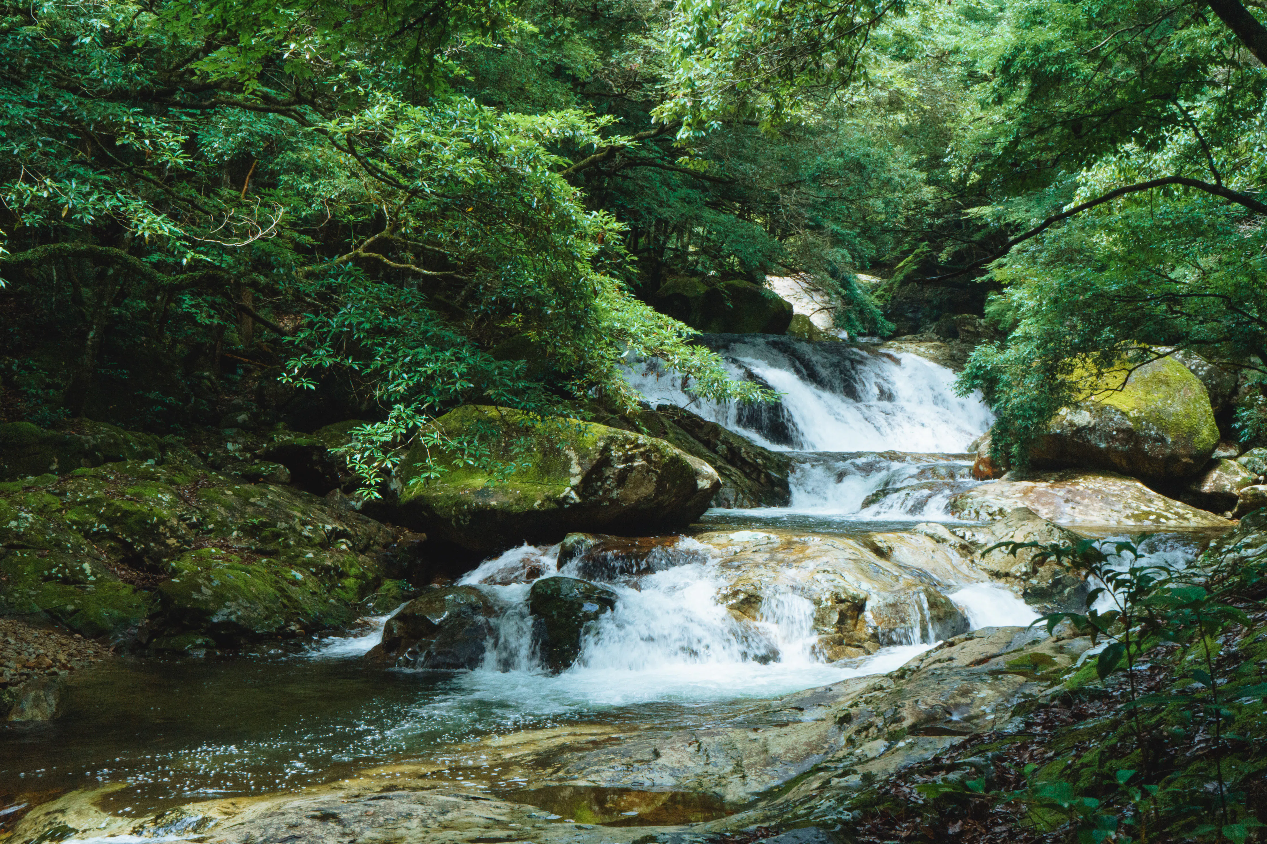 木々や透き通る川の水の美しさ、
