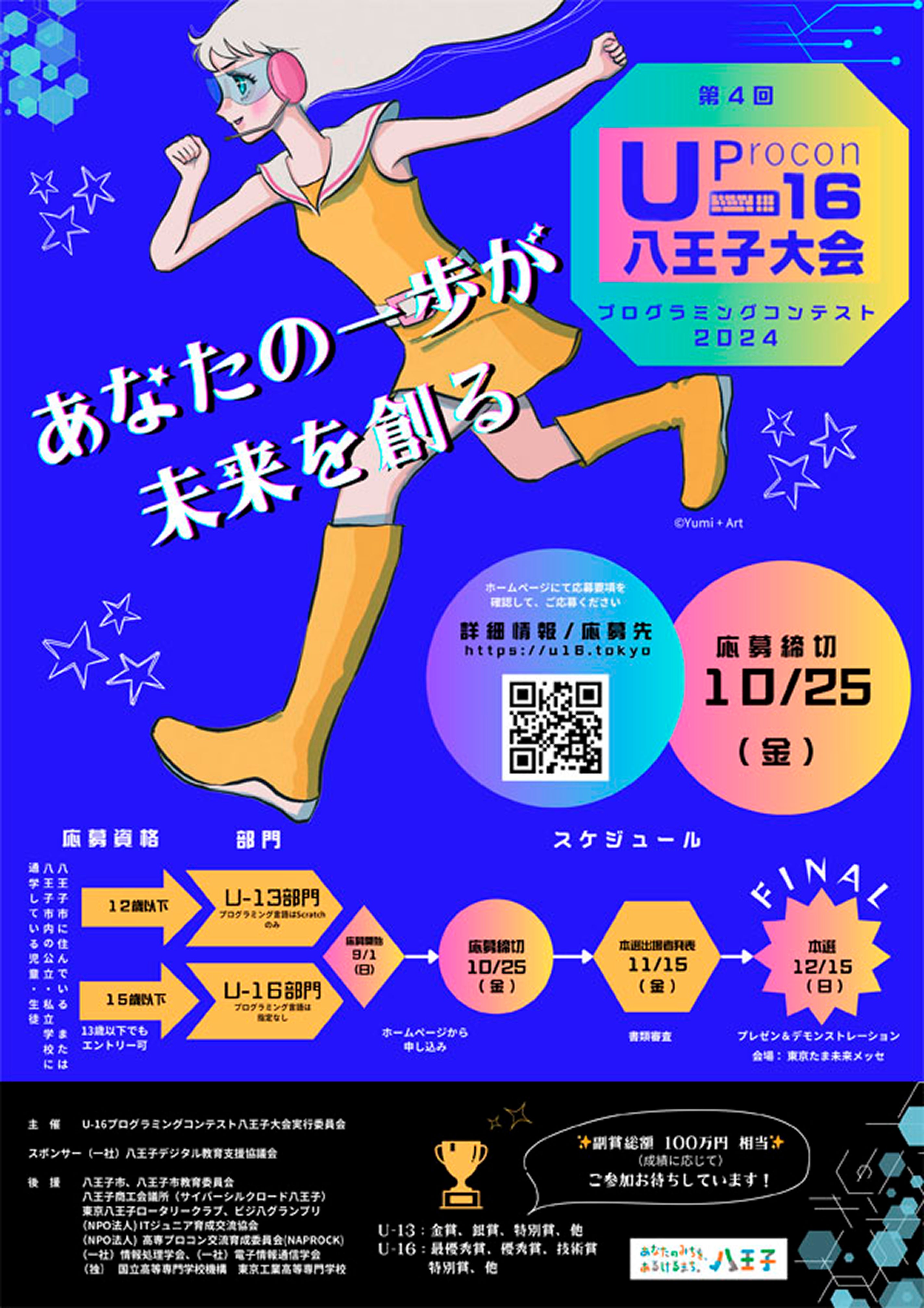 現在、小学校ではプログラミング教育が必修となっていますが、先生にかかる負担の多さや教育体制の遅れにより、十分な指導ができていない現状があります。そこで、子どもたちが 「プログラミングって楽しい!」 と感じ、ものづくりの面白さを知る機会を提供するために、八王子椚田町の国立東京高等専門学校と連携し、小中学生を対象に3年前から開催しているのが、「U16プログラミングコンテスト」です。