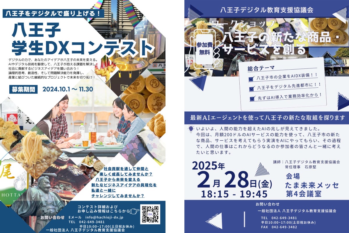 一般社団法人 八王子デジタル教育支援協議会は、『八王子を日本一のデジタル推進都市にすること』を目標に掲げ2021年に発足。以来、学生向けのIT・プログラミングコンテストの開催や、企業向けのセミナーなどの実施を通して八王子のデジタル化を進めてきました。
