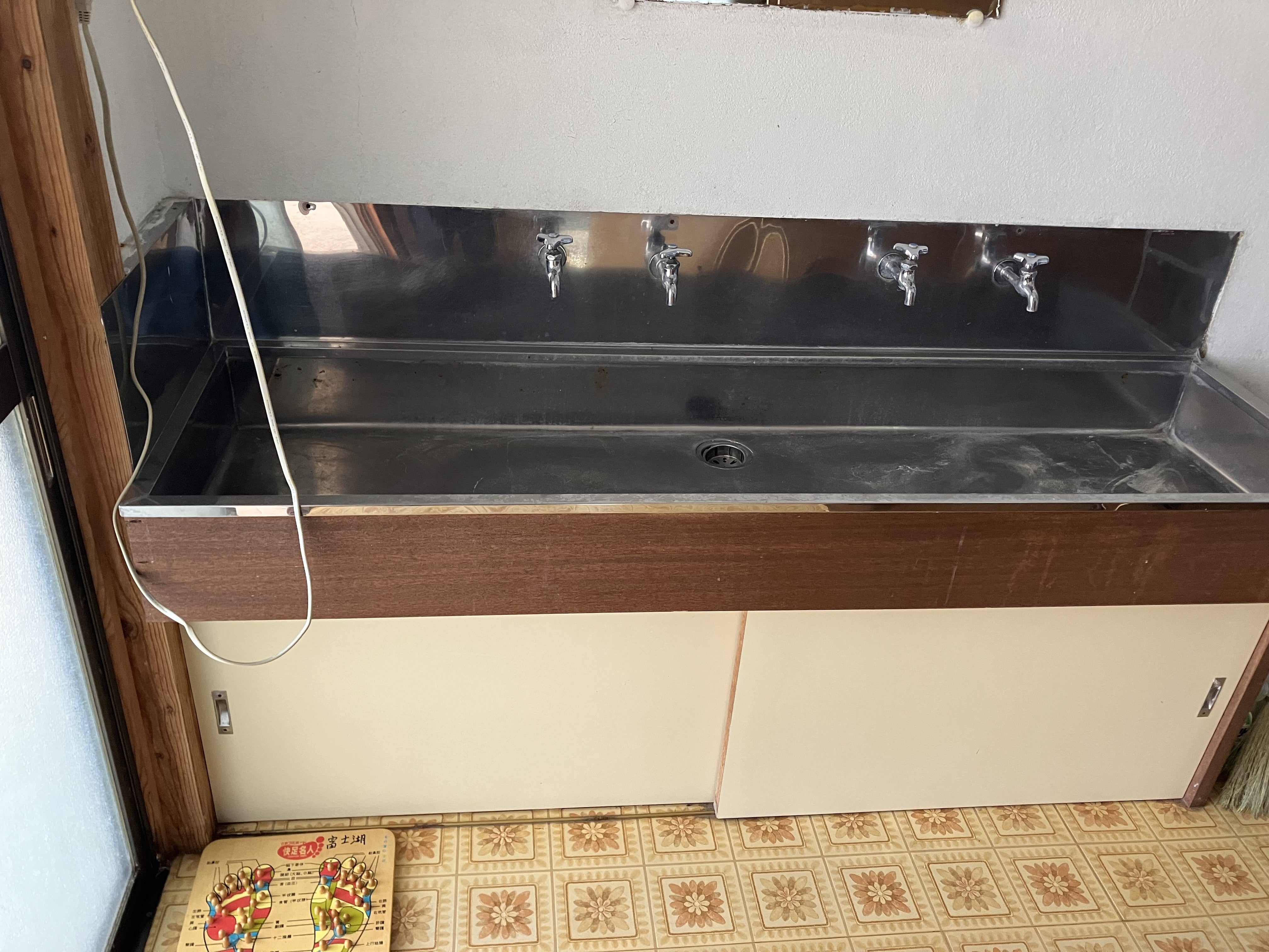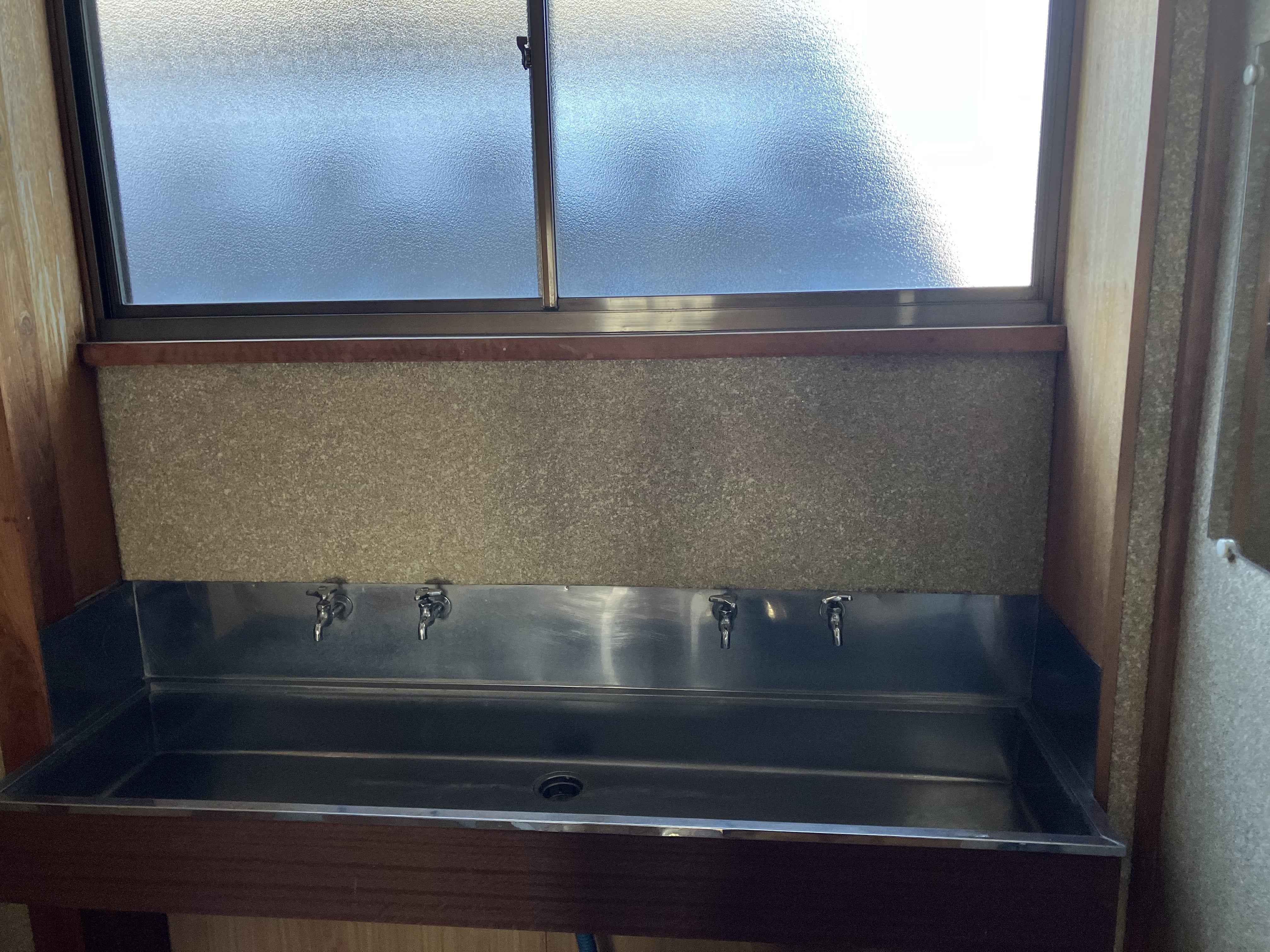 広間の障子をあけて右側にも蛇口4個ついています。またトイレ2個ご用意ございます。