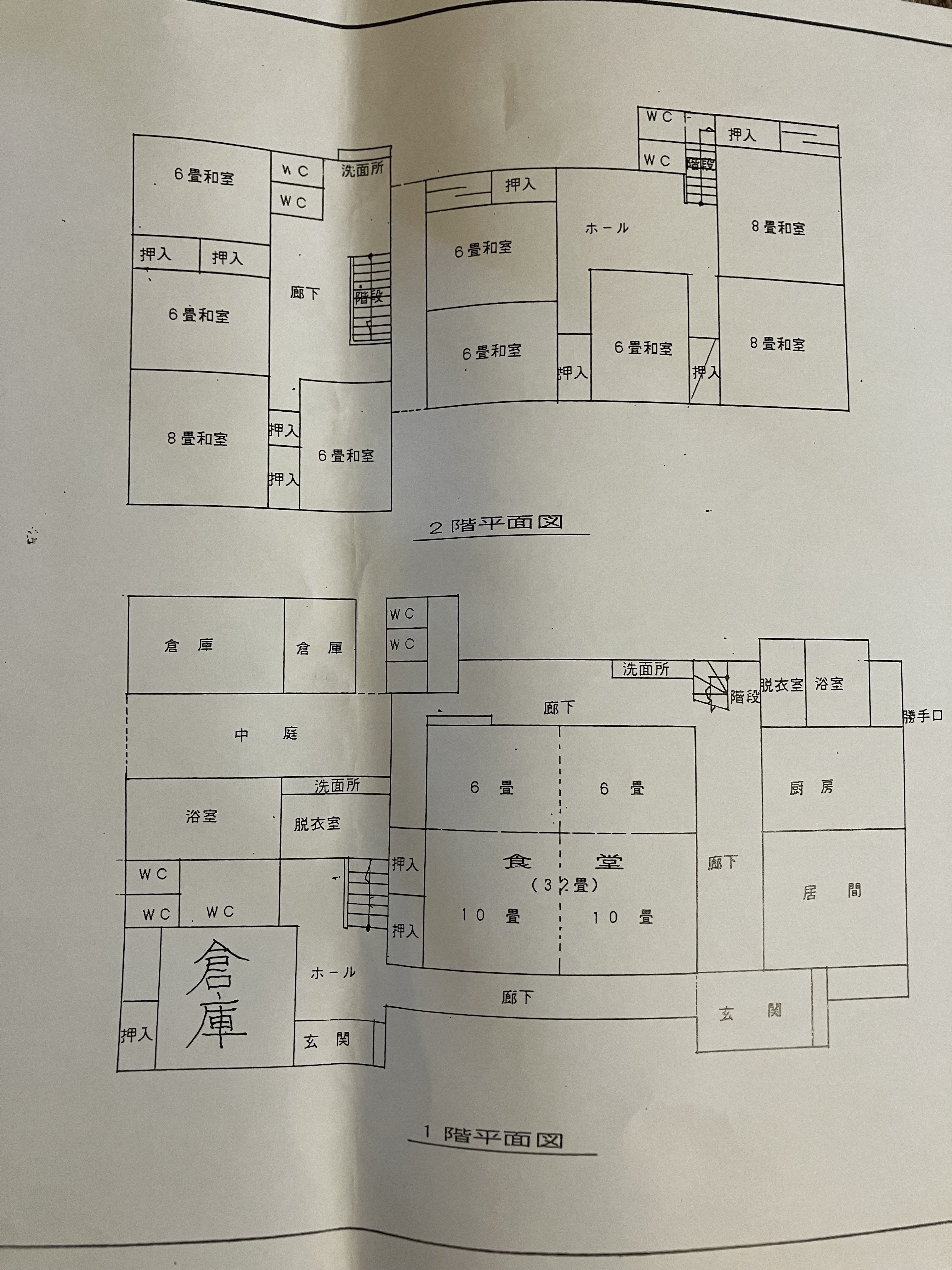 2階は6畳間、6畳間、8畳間、6畳間の4部屋 和式トイレ 2個 蛇口4個