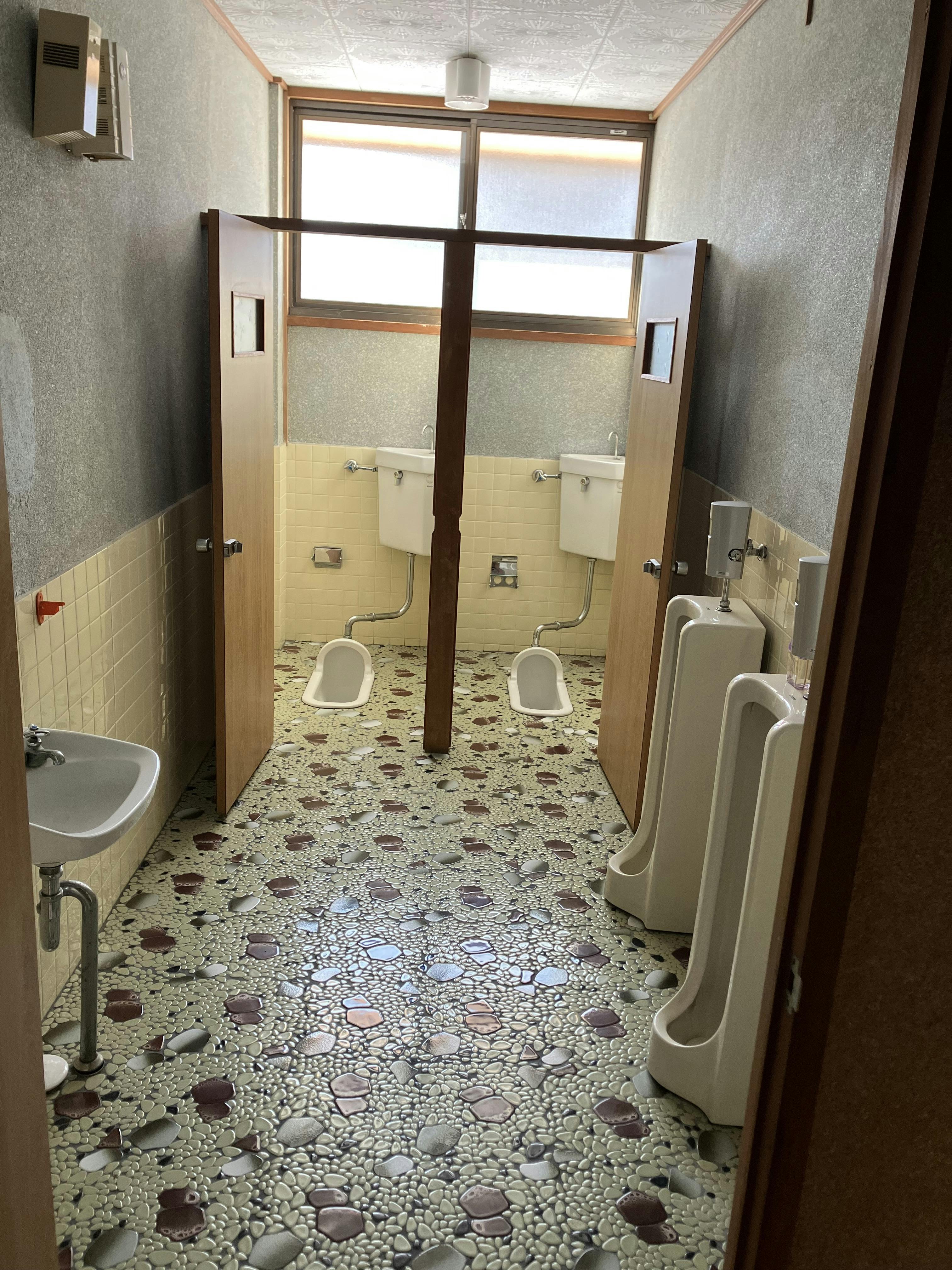 一階は8畳間1部屋です。隣は和式トイレ2個、小便器2個ございます。