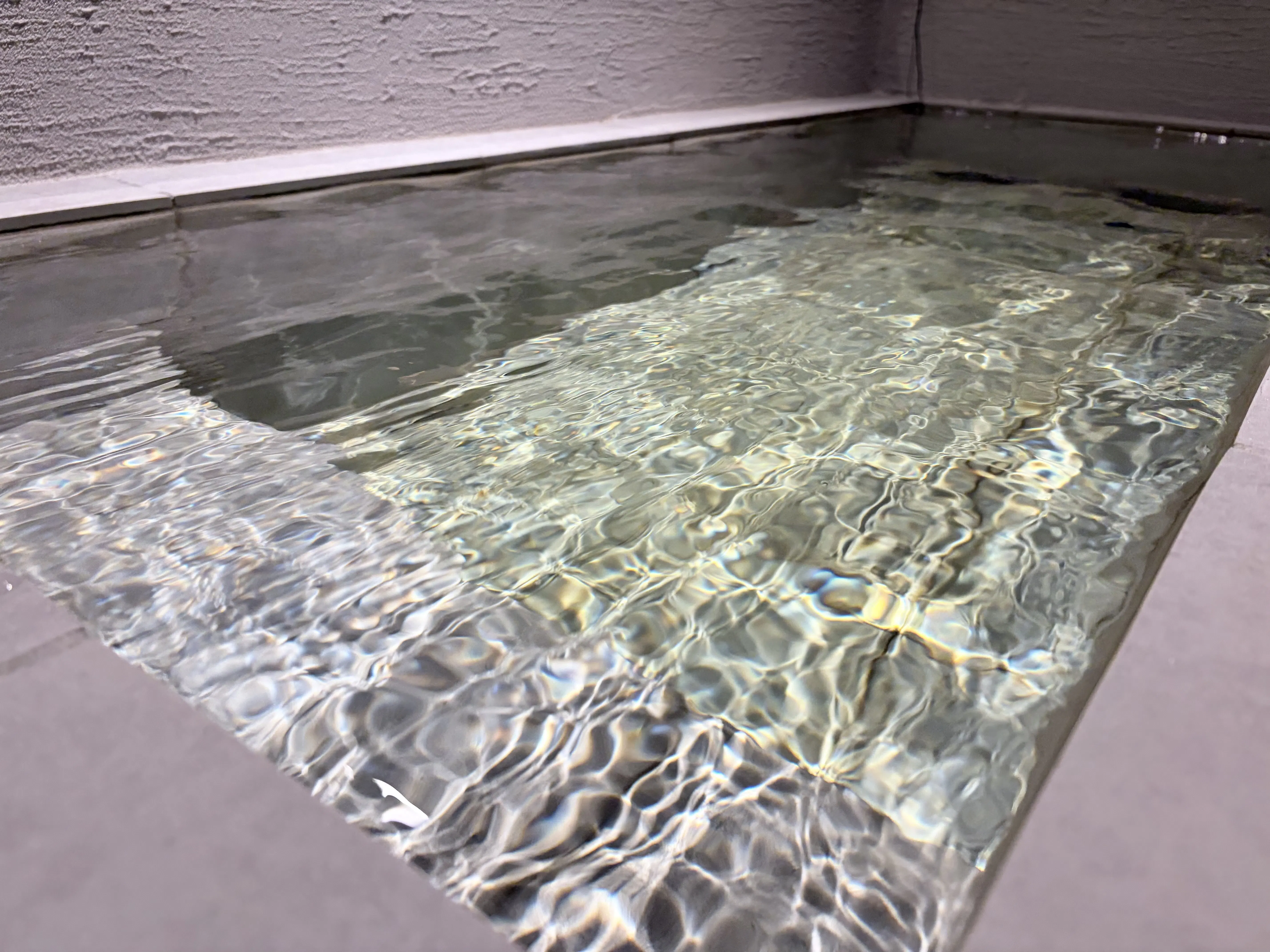 複数回保健所に相談の上、再調査を行ったところ、温泉成分であるメタケイ酸が検出され、温泉成分を含む水風呂としての利用が認められました。