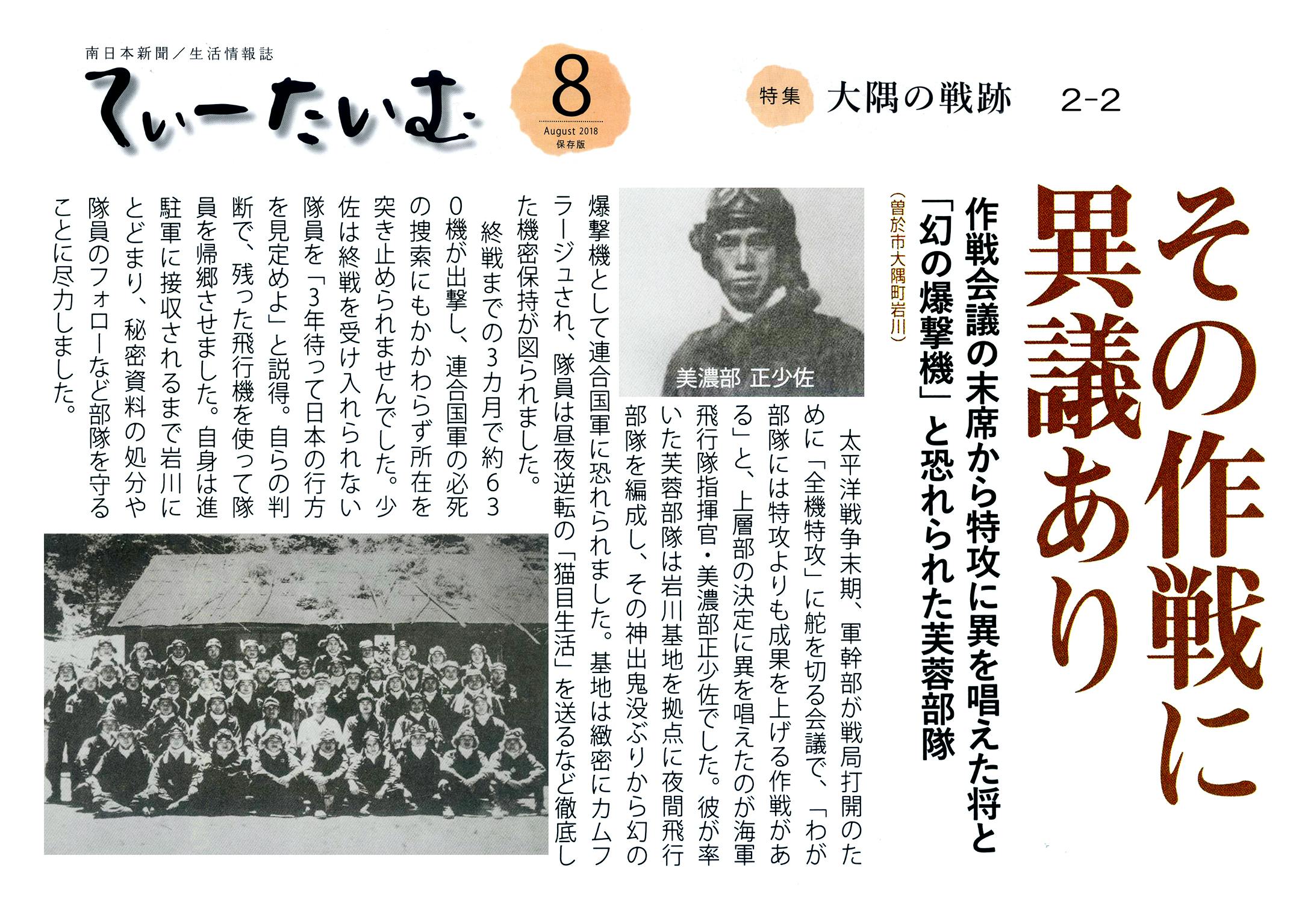 芙蓉部隊とは、太平洋戦争末期に主力戦術として推進されていた特攻作戦に異議を唱えた美濃部正少佐が率いた隊です。芙蓉部隊は特攻ではなく夜間攻撃という独自の戦法を展開。米軍は「芙蓉部隊による攻撃のせいで、夜も安心して眠れない」という言葉を残すほどの戦果をあげました。