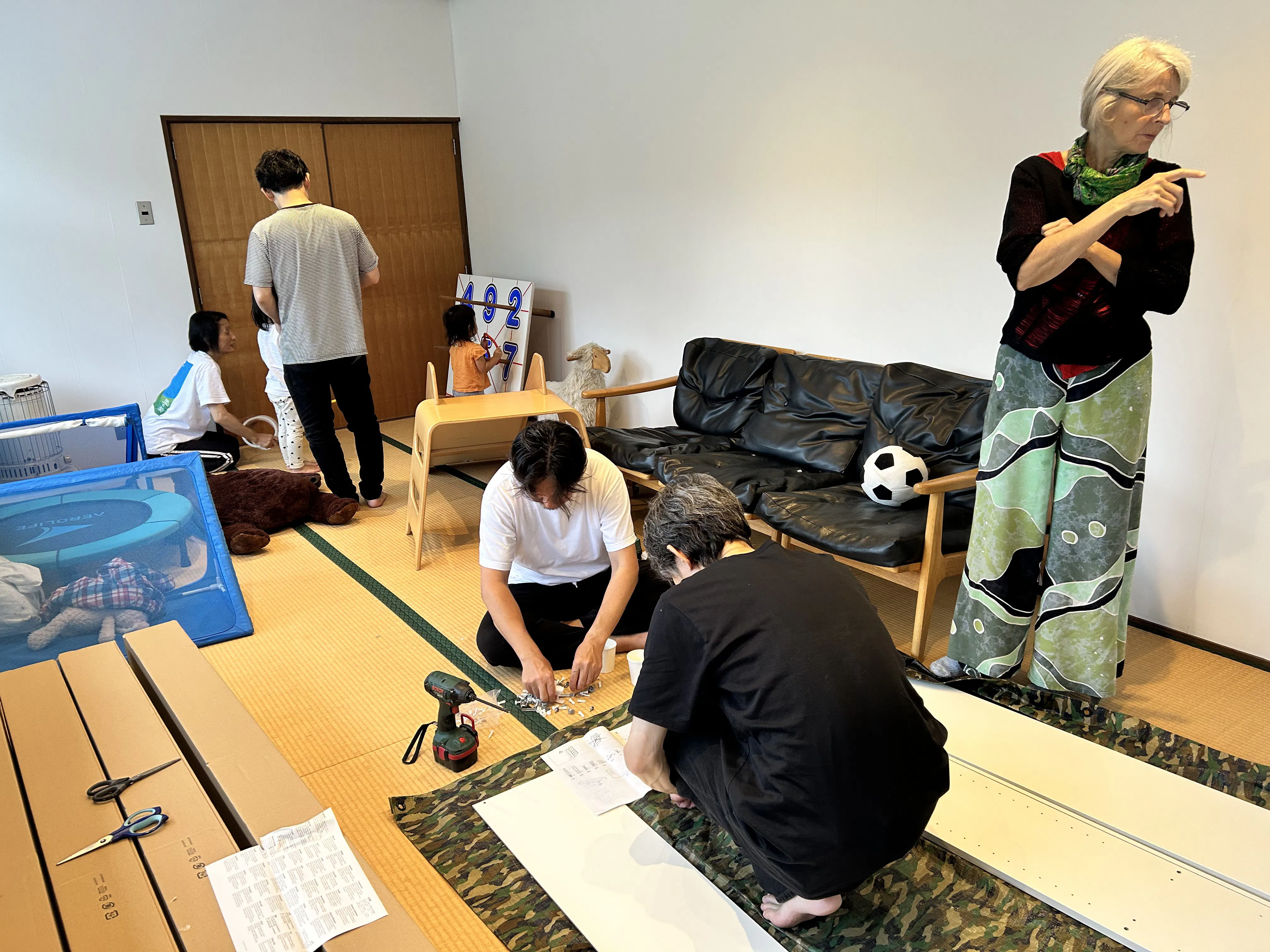 お芋ほりに参加予定だった子どもたちも自然と輪に加わり、みんなで工具を使ったり、木材を運んだり。賑やかな声が響き渡る、創造的で温かい時間となりました。雨が降ったことで生まれた、特別な思い出です。初めて来られた参加者の方からは「山の家のDIYに参加出来て、仲間になれたという気持ち」とのお言葉もいただけました。