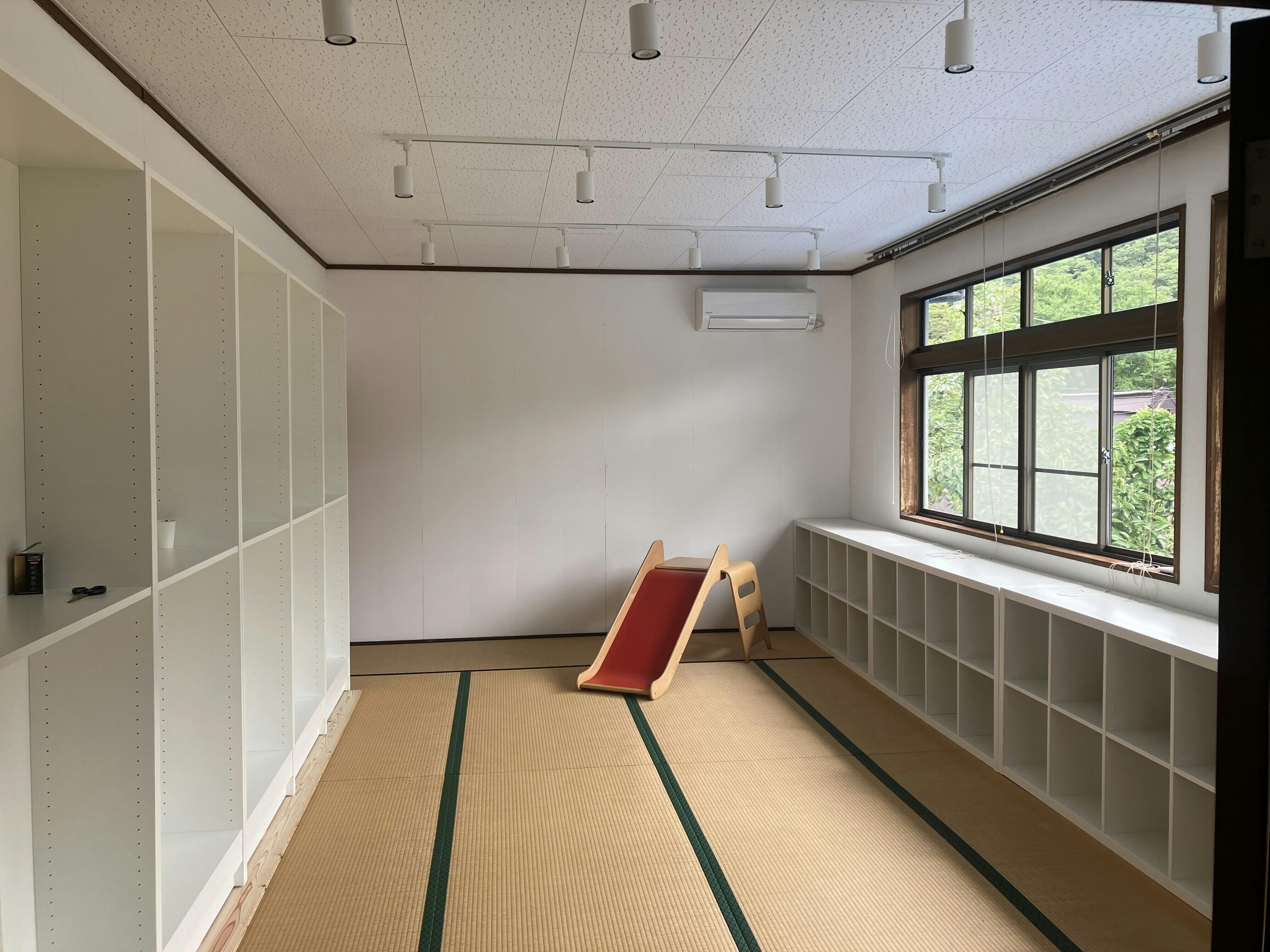 これまで夏の稽古は山の家じゅうの扇風機を最強速度でぶんぶん回して行っていて、熱中症のリスクとの闘いでしたが、このたび道場、図書館、お客様が宿泊できる部屋にエアコンが設置されました!これで季節を問わず、誰もが安心して活動に集中できる環境が整いました。一方、2階にある狭い客室2部屋と私たちが利用しているスタッフルームにはエアコンは無し。こちらはまた追々整備をしていこうと思います。