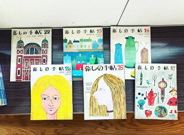 「山の家」で保管している昭和時代の古い「暮しの手帖」バックナンバー。