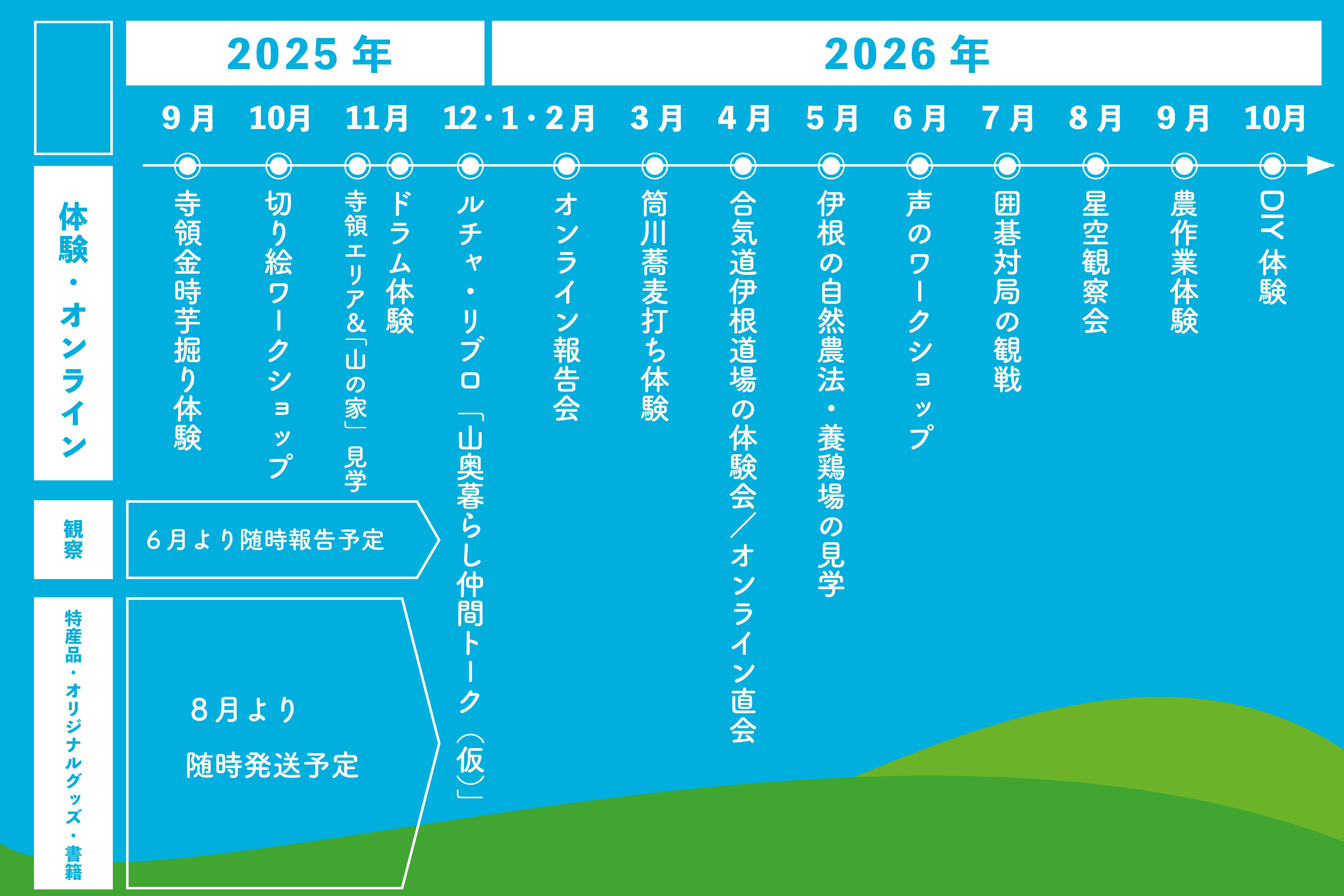 当プロジェクトへの支援をご検討いただきありがとうございます。私たちの感謝の気持ちを込め心ばかりのリターン(支援のお返し)をご用意いたしました。寺領そして伊根町の特産品や「寺領の寺子屋」をはじめ寺領の魅力を体験いただけるよう工夫しました。また「山の家」は大変不便な場所にあるため、距離に関係なく参加いただけるリターンもご用意しました。これらを通じて私たちの思いが皆さまに届き、よりよきご縁で結ばれることを願っています。