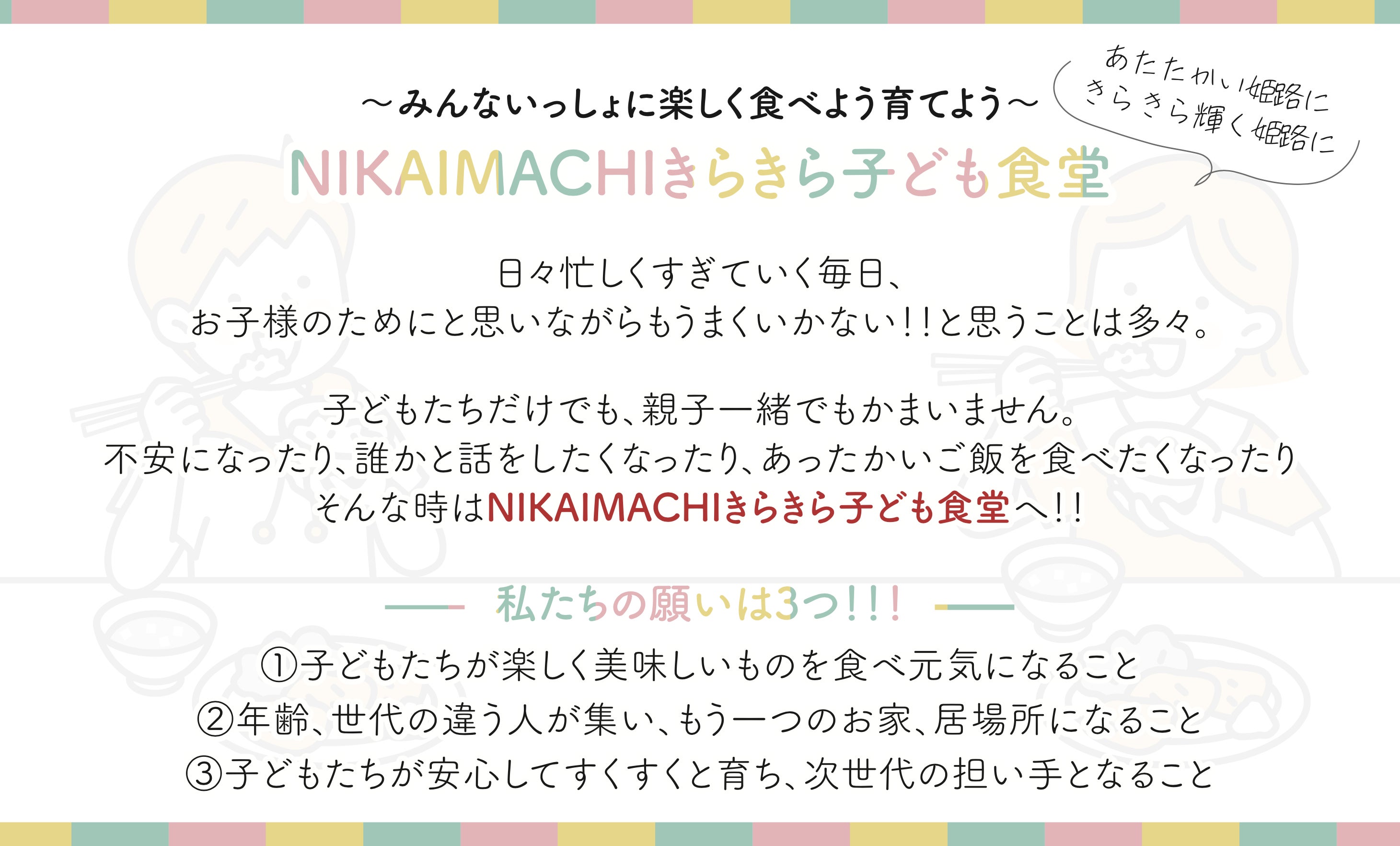 みなさんはじめましてNIKAIMACHIきらきら子ども食堂と申します。