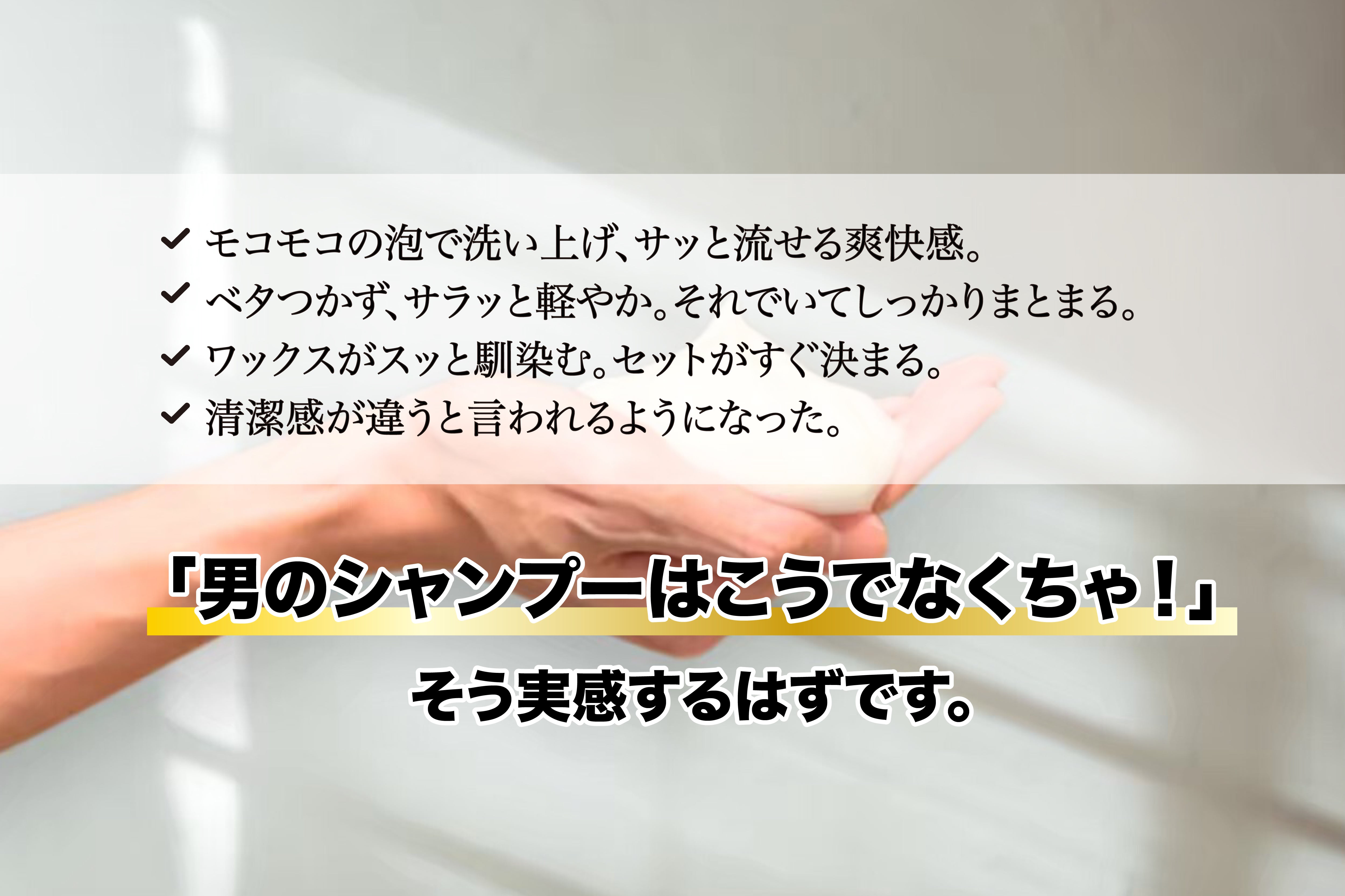 石けんベースで、余分な皮脂や整髪料をスッキリ洗浄。