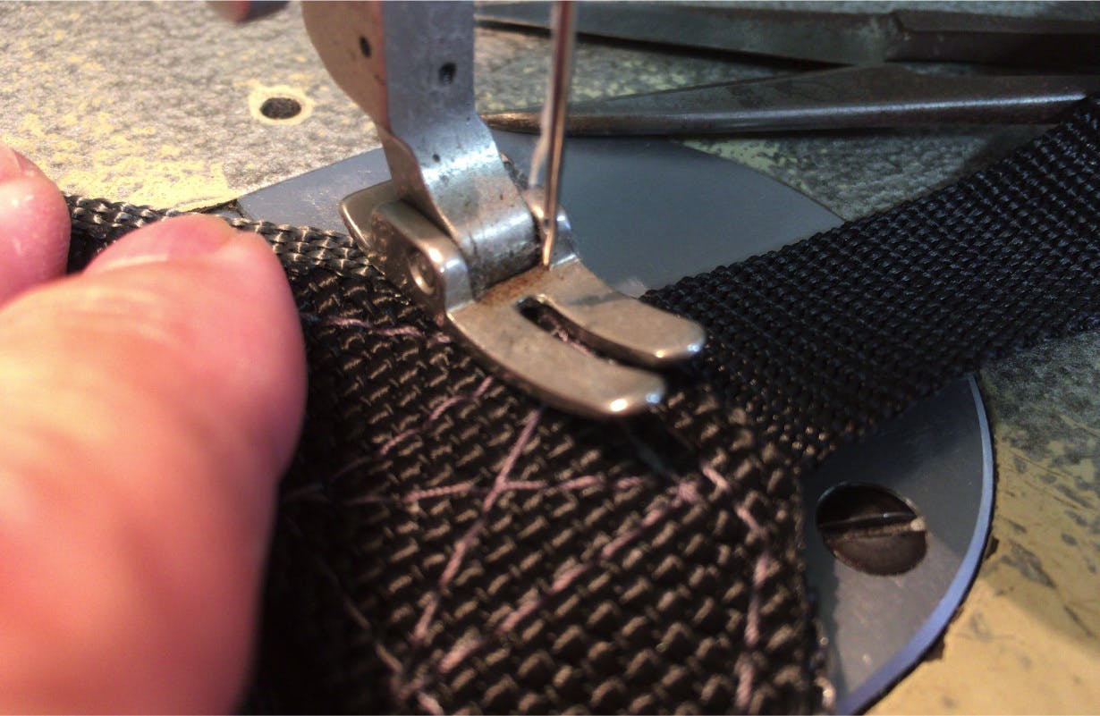 ・強靭なナイロンオックス420d(デニール)の撥水コーティング生地を背座の全面に2枚重ねで国内縫製しています。