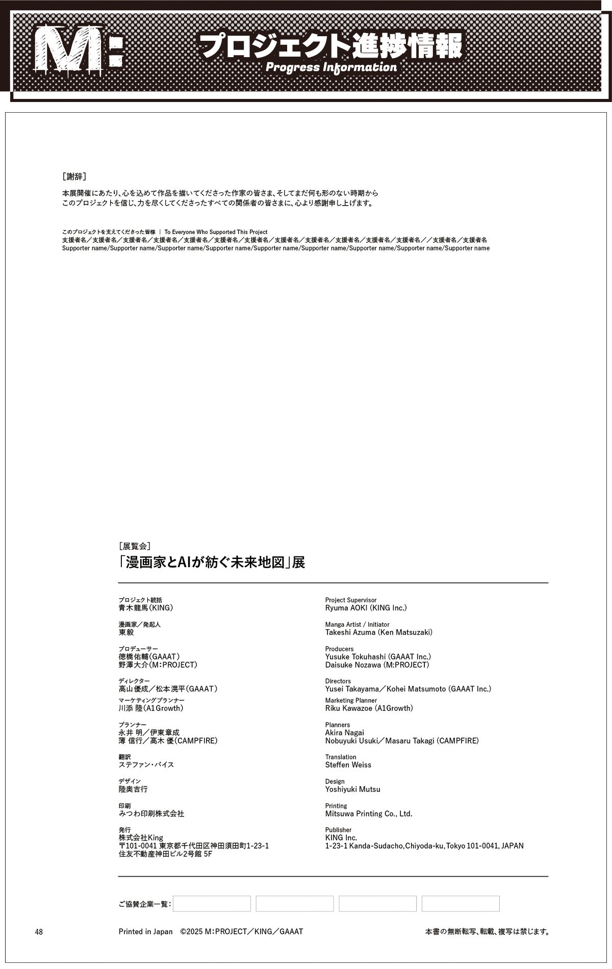 現在、クラウドファンディングでご支援いただいた方にお届けする特製図録に、ご支援者さまのお名前(ハンドルネーム可)を奥付ページに掲載する特典を追加でご用意しました!
