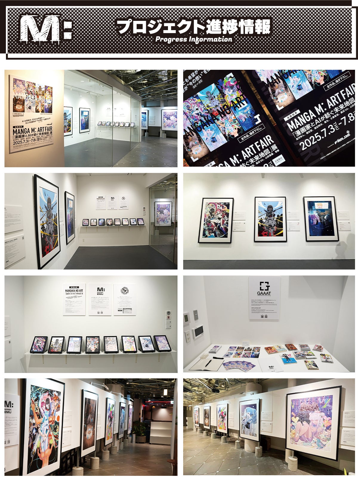 設営を終え、会場いっぱいに並んだ8名の漫画家による描き下ろしアート作品を前に、改めてこのプロジェクトが現実のものとなった感慨と、ご支援くださった皆さまへの感謝の気持ちでいっぱいです。