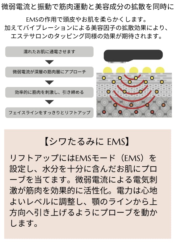 → 心地よい振動で肌を優しく刺激し、施術効果をアップ
