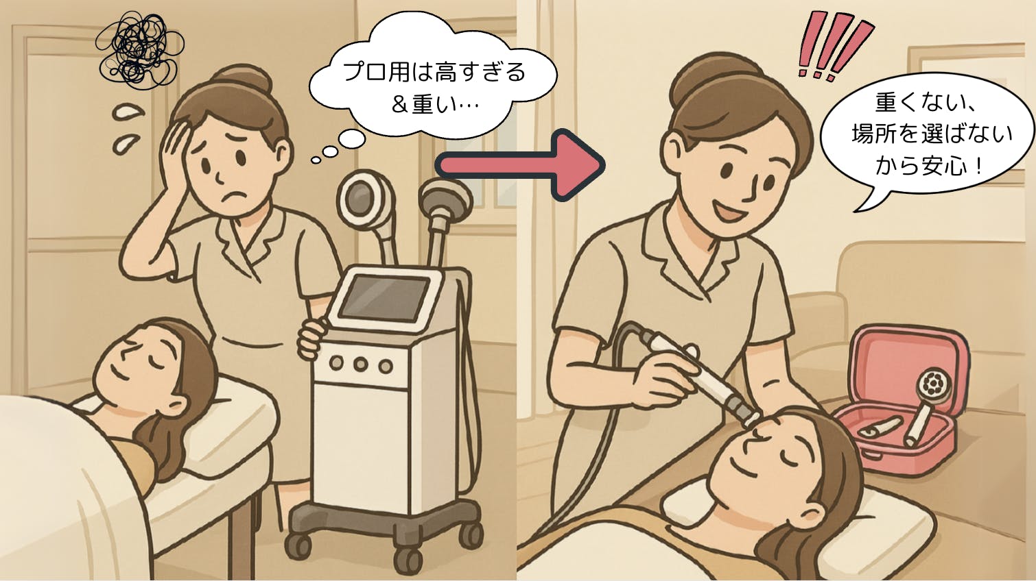 ルミナスは、“どこでも本格施術”を実現する、まさにエステティシャンの相棒です。