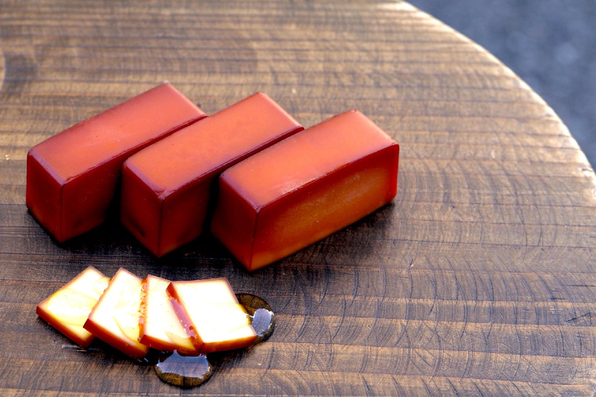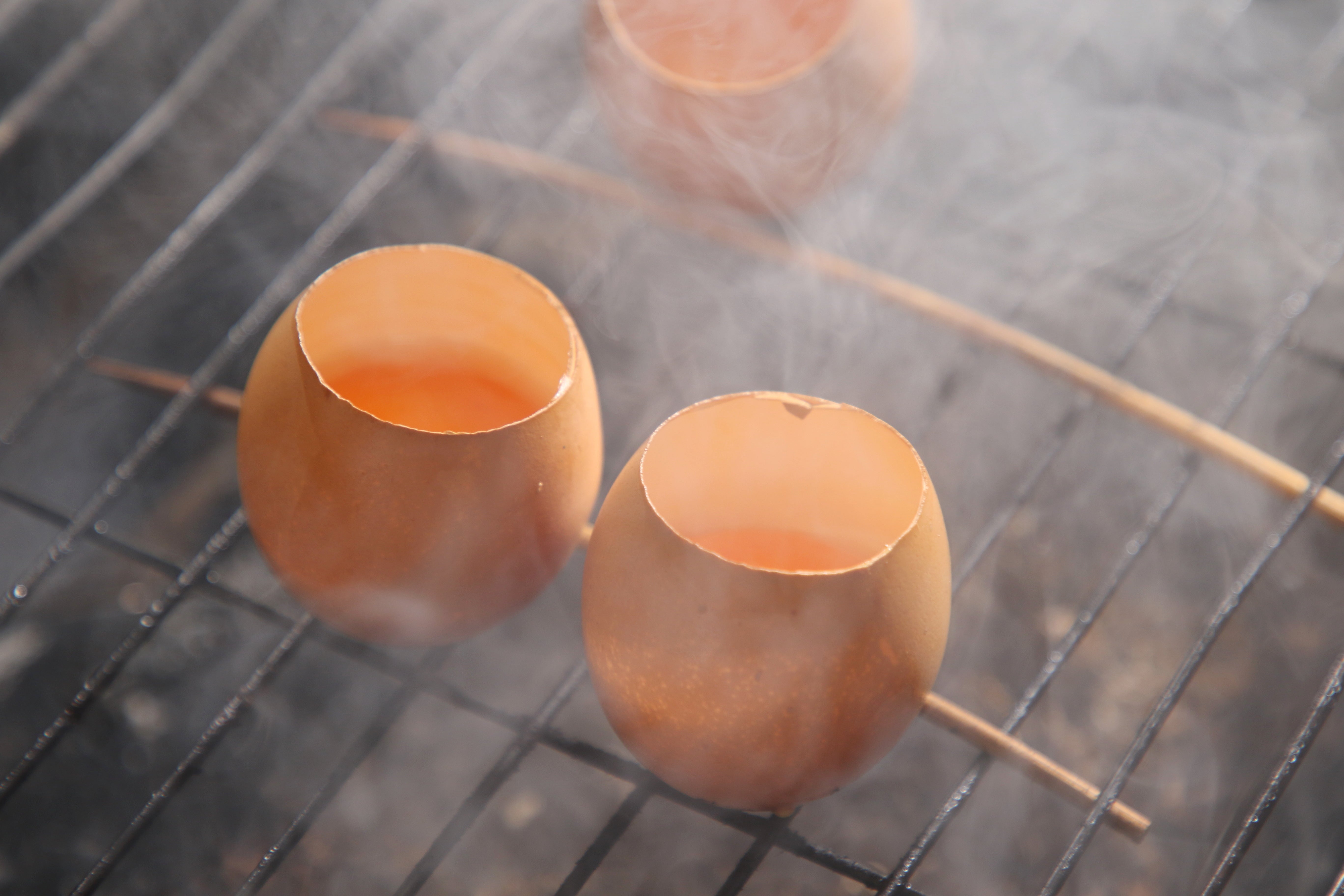卵白は取り除き、卵黄だけを殻ごと燻製することで半熟を維持しながらもしっかりと燻製に!