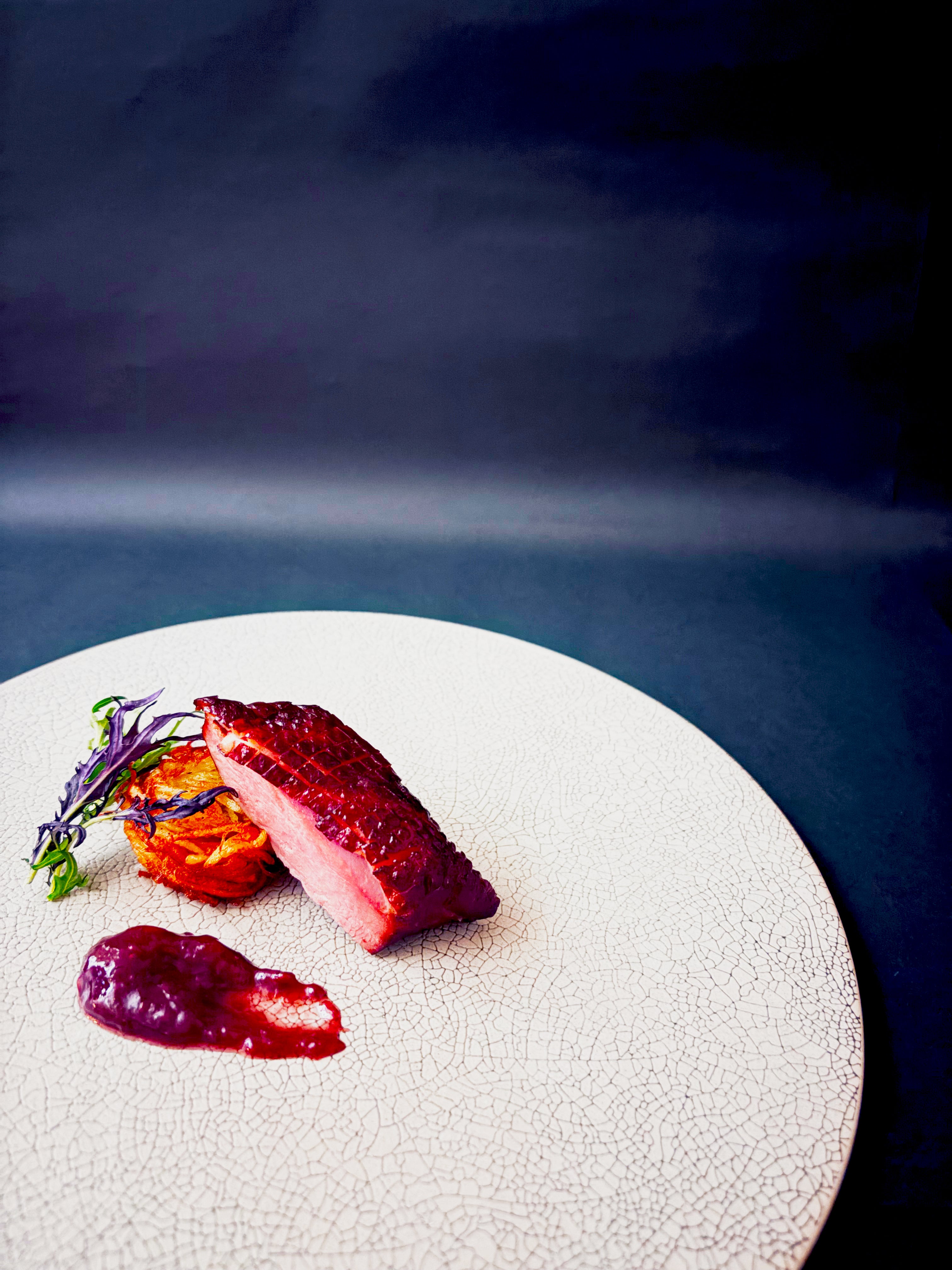 合鴨スモークのロースト スパイスベリージャム添え