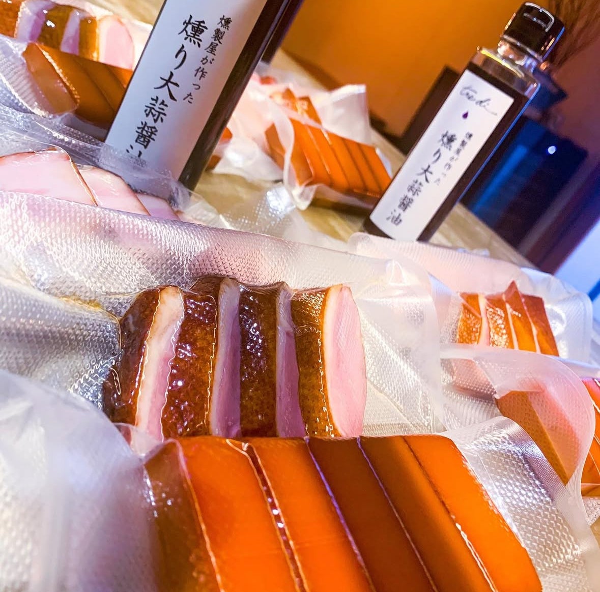 遠方にお住まいで、ご来店が難しい方には、燻製を真空パックでパッキングした詰合せをチルド便にて郵送いたします。