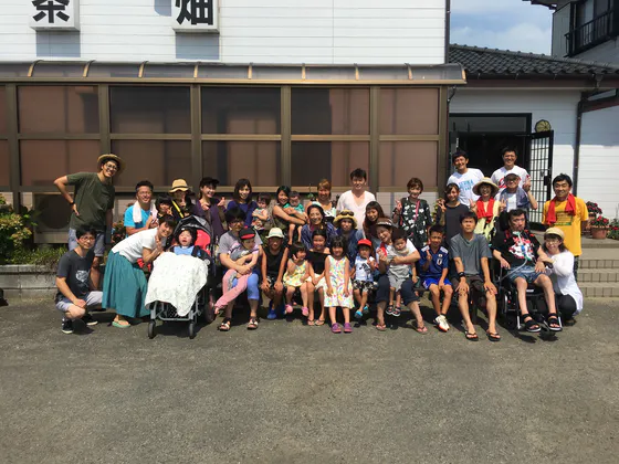 (Sちゃんとご家族の集合写真。宿泊先の民宿にて。※掲載にはご許可をいただいております。)
