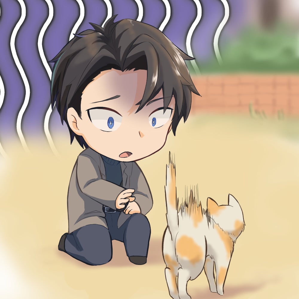猫に威嚇をされショックを受ける学人くん