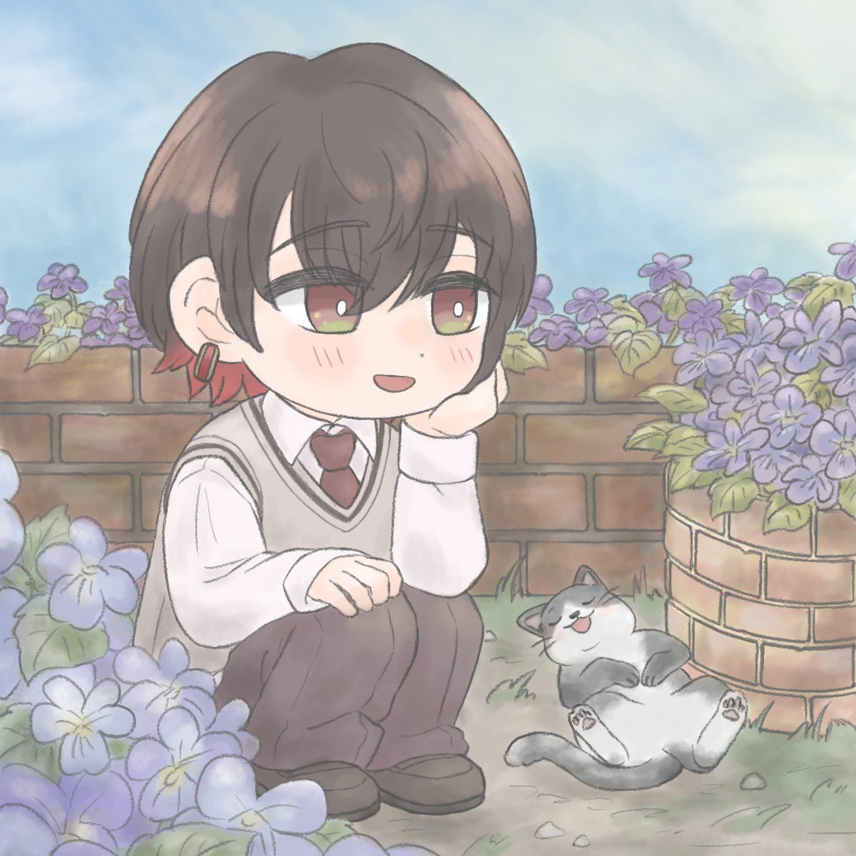 すみれを眺める颯希くん