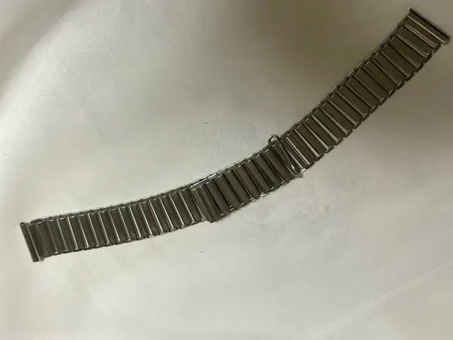 ”ボンクリップ”の商品名で知られるバンブーブレスレット1930年にロンドンに住むダットリー・ラッセルが特許を取得し、依頼多くのメーカーに製作された自由にサイズを調整できる優れもののベルトです。金属ながら軽くて着けごごちの良いストラップです。