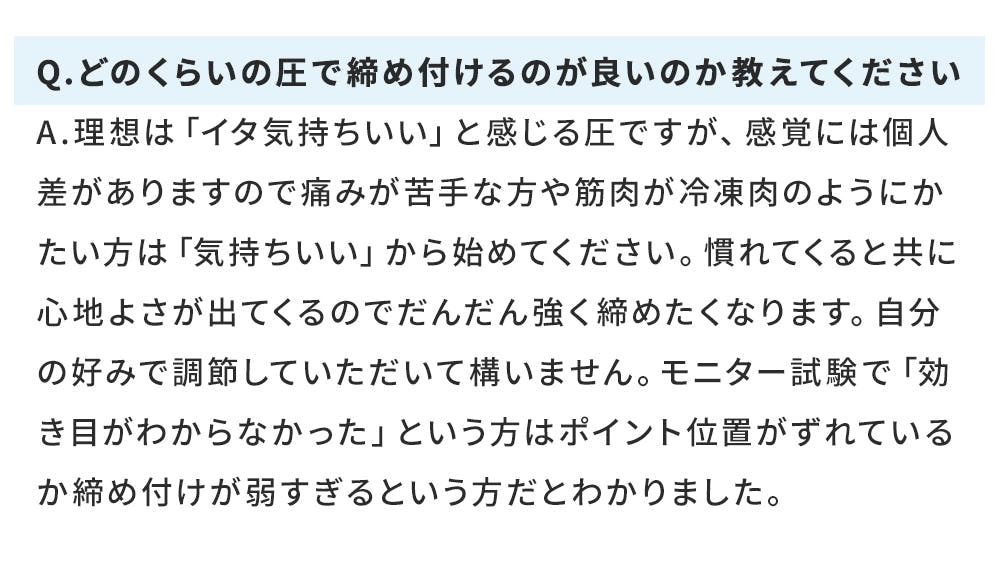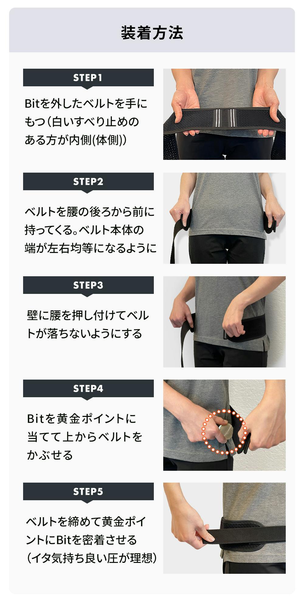 - (ご来店時に筋膜Bitコリセットをご持参いただきましたら装着方法をサポートします)