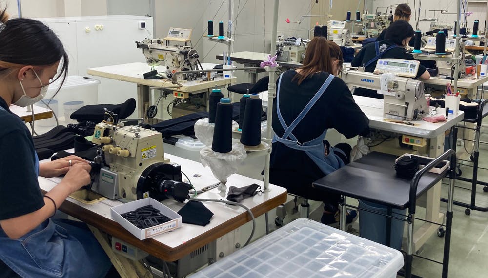 きちんと整理整頓された工場内、糸くず一つも落ちてない清潔な環境で丁寧に作られていることに安心致しました。作り手の”まごころ”も込められてまもなく初回ロットの完成を迎えます。