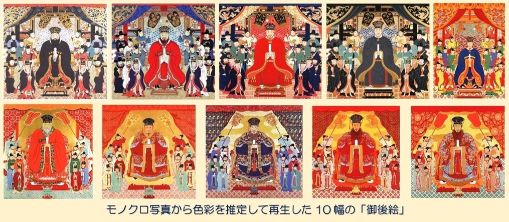 「御後絵」は、450年続いた琉球王朝時代に描かれた歴代国王の肖像画ですが、第2次世界大戦で行方不明となり、2024年までは戦前モノクロで撮影された歴代国王10人の「御後絵」写真のみでしか見ることのできない幻の琉球絵画と呼ばれていました。